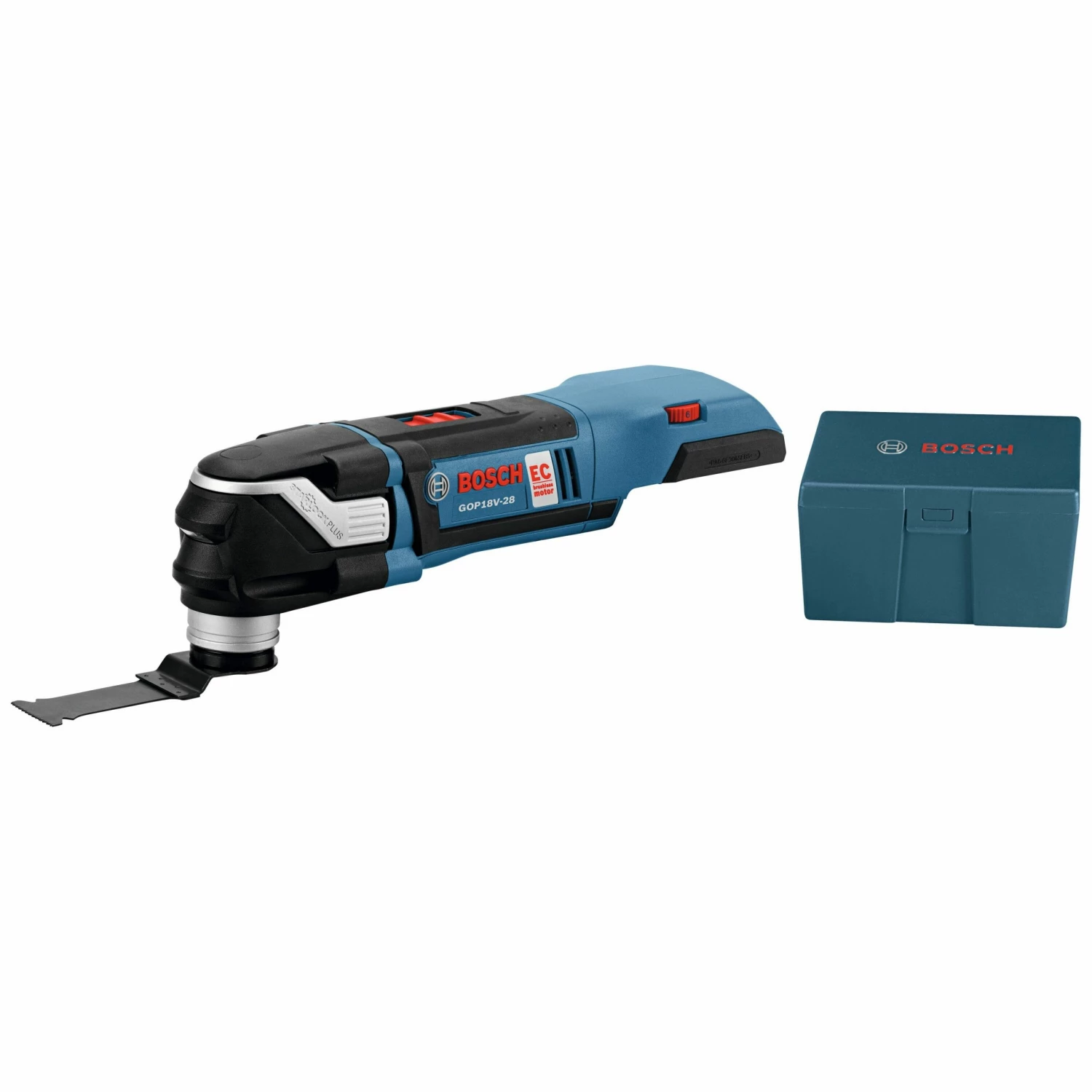 The Bosch GOP18 V-28 18 V star lock plus®® oscillating Multi-tool (bare tool) features the star lock® next-generation 3-D tool-accessory interface. This provides outstanding accessory grip, making it the new professional standard in oscillating tool performance. With more contact surface area between the tool and accessory, the star lock® interface is a cupped 3-D tool-accessory connection that delivers greater torque transfer for an expanded work capacity. The no-touch blade-change system makes it easy to attach, remove or reposition blades. The EC Brushless 18 V motor offers up to 30% more power and better efficiency than previous-generation 18 V motors for increased power and runtime, offering performance comparable to the corded Bosch GOP40-30 star lock plus®. The 18 V motor delivers a top speed of up to 20,000 oscillations per minute, and the tool provides a 2.8Ð oscillating arc. A variable-speed dial allows the user to set the optimal speed for the task at hand, and Constant Response circuitry maintains the desired speed under load. At only 2.7 Lbs., this light and compact tool reaches tight spaces, provides comfortable ergonomic grip zones and has an LED light for illumination in dark work areas. The GOP18 V-28 provides outstanding versatility – utilizing the many star lock® and star lock plus® accessories to handle flush-cutting, plunge-cutting, sanding, grinding and many other tasks related to a wide array of materials. (For compatibility with star lock Max® accessories, which perform industrial-grade applications, Bosch offers the GOP55-36 oscillating Multi-tool.) It is a bare-tool kit; the battery and charger are sold separately.