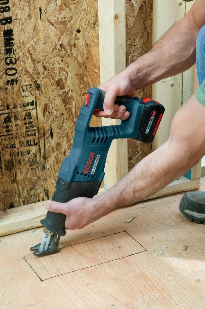 The Bosch CRS180B 18 V Reciprocating Saw is built to easily move through hard tasks in places other reciprocating saws can’t fit. It has the best power-to-weight ratio in its class. And at only 17.4 In. long and 7.6 Lbs., this formidable but compact cordless reciprocating saw allows electricians or plumbers with a tool that delivers an efficient 1-1/8 In. stroke, to remove more material per stroke. The tool’s light weight is ideal for continuous cutting over-the-head. The easy-to-operate Lock-Jaw™ blade-change system allows for fast one-handed blade changes. It has two speed ranges – 0-2,400 SPM and 0-2,700 SPM – to match the speed of the cut to the material, and it easily handles multiple materials. The CRS180B is a bare tool; the battery and charger are sold separately.