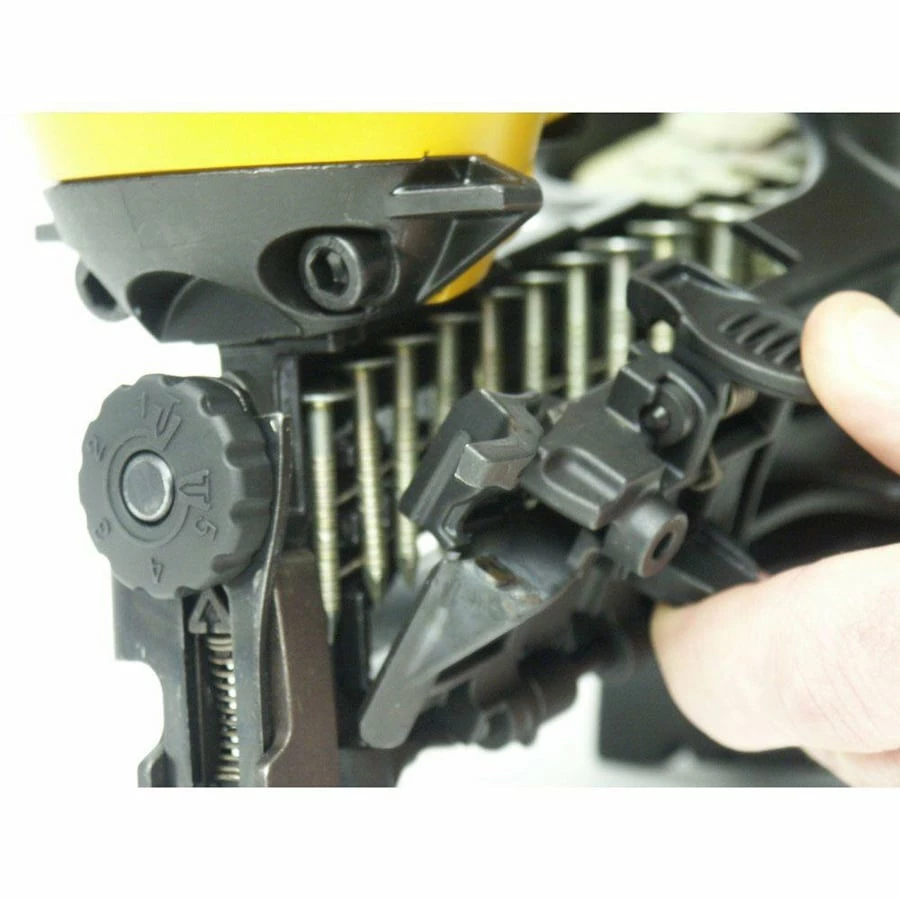 This coil roofing nailer has a durable aluminum housing and a one-door loading system for fast reloading. It has a dry-fire lock out to prevent dry firing and to alert the user to reload the magazine. Depend on this coil roofing nailer for durability and comfort.