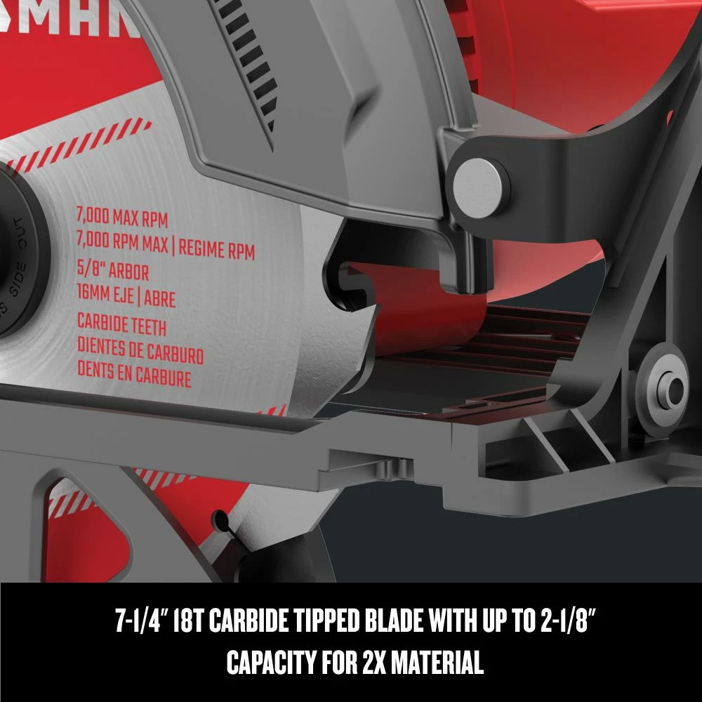 - 2X THE MATERIAL: 7-1/4-in 18T Carbide Tipped blade with up to 2-1/8-in capacity for 2x material