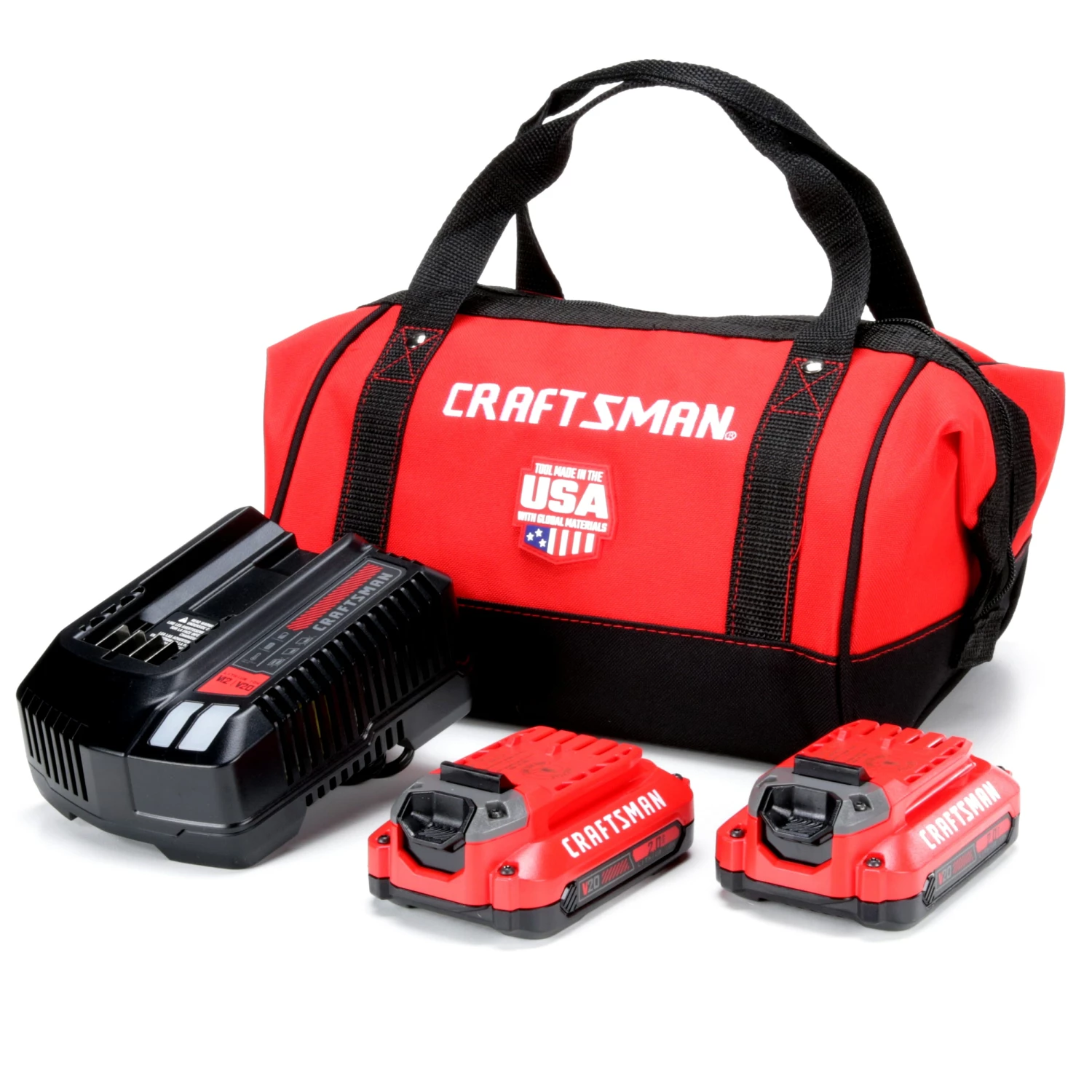 - Includes (1) CMCD720 Drill/Driver; (2) CMCB202 V20 20V MAX 2.0Ah Lithium Ion Battery; (1) V20 20V MAX Lithium Ion Charger; (1) Belt Clip; (1) Storage Bag