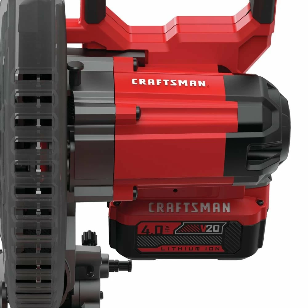 - Includes (1) CMCS714 7-1/4-in Sliding Miter Saw; (1) CMCB204 V20 20V MAX 4.0Ah Lithium Ion Battery; (1) CMCB104 V20 20V MAX Lithium Ion Fast Charger; (1) Carbide Tipped Blade; (1) Blade Wrench; (1) Material Clamp; (1) Dust Bag