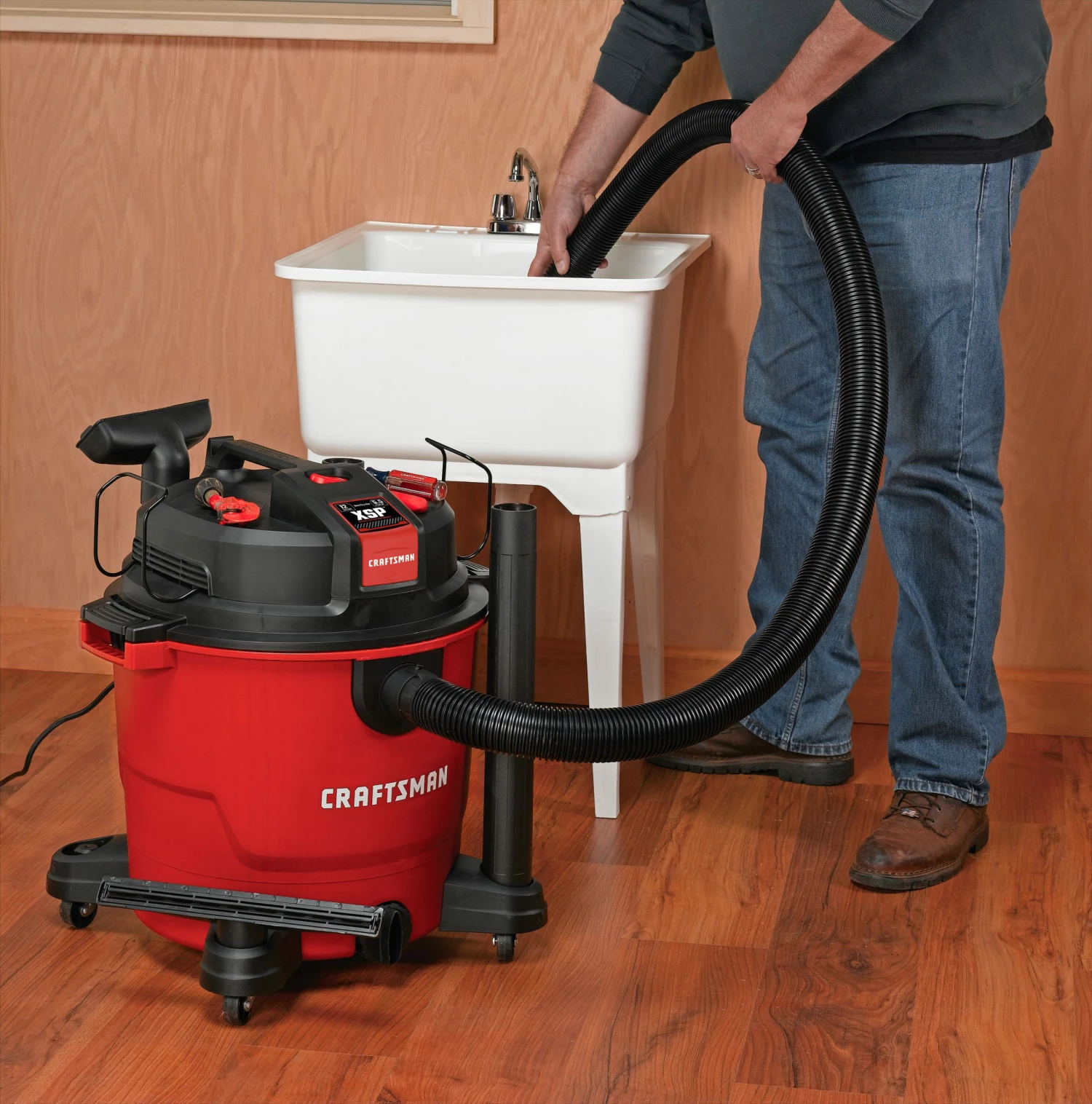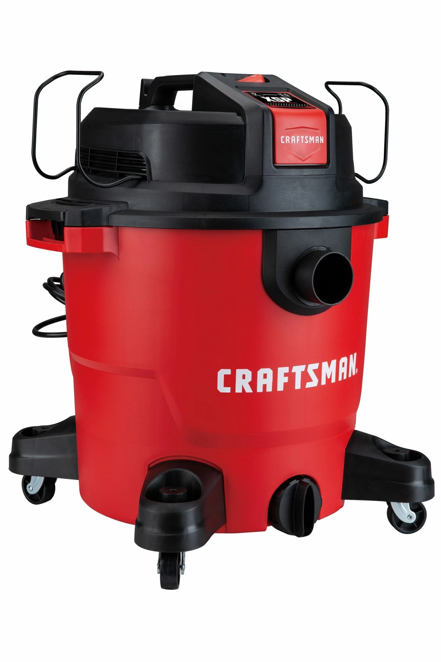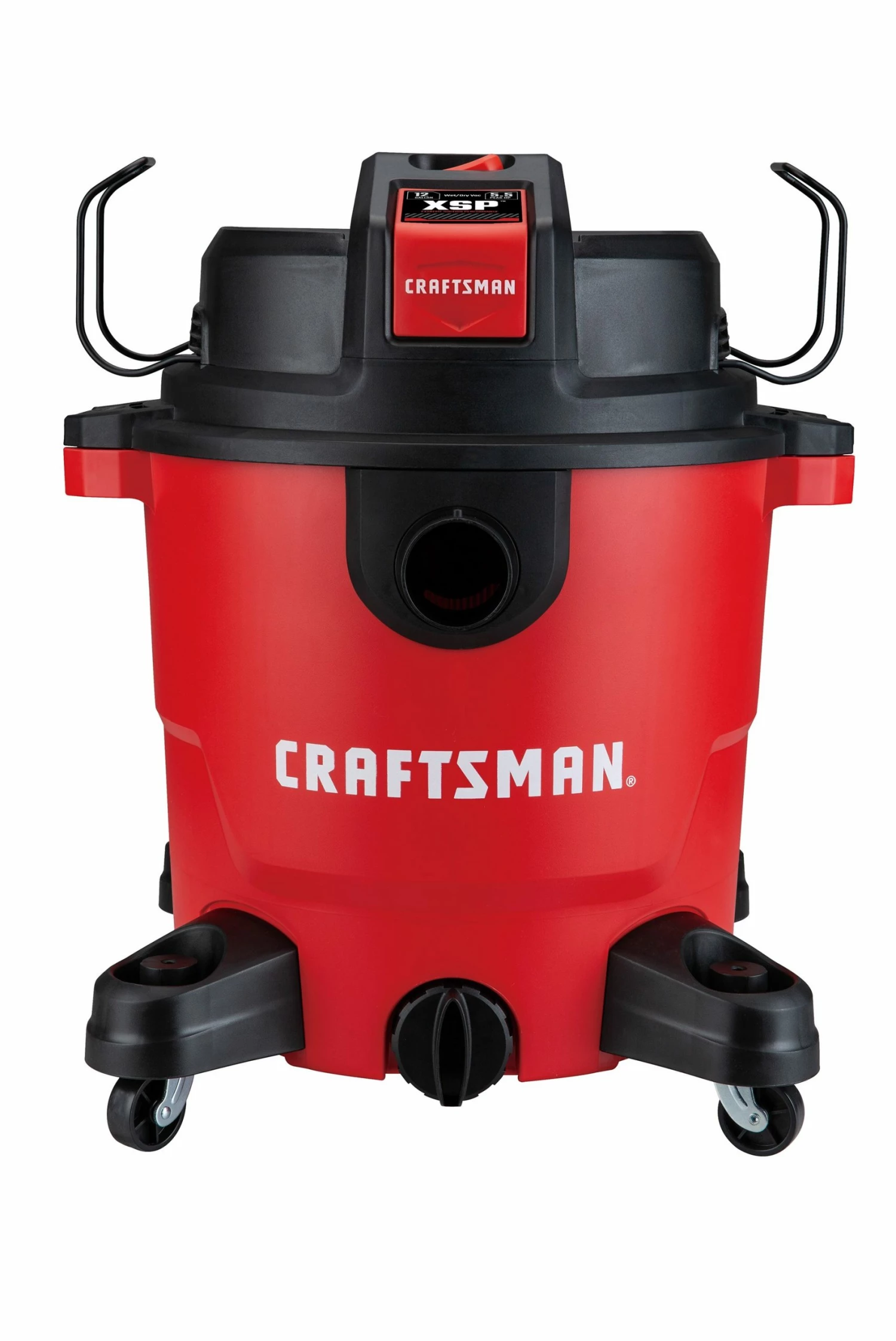 The full-size Craftsman 12-gallon wet/dry vacuum is designed to tackle the toughest projects that the home, shop, or jobsite can throw at you. The 12-gallon tank offers plenty of room for big messes and the high performance 5.5 peak HP† motor makes sure the tank gets filled, whether it’s with sawdust from the shop or debris from the jobsite. With its unique flat power head design, you have a place to conveniently store tools so they are easily accessible when needed. The on-board hose, power cord, and accessory storage allow you to keep all of your attachments organized and in one place. The wide-set casters and balanced top handle make for convenient transportation from one place to the next. This wet/dry vacuum comes standard with a wide array of accessories so you have the tools to get the job done no matter what. Turning this vacuum into a blower to remove debris from your yard or workspace could not be easier – all it takes is a simple conversion.