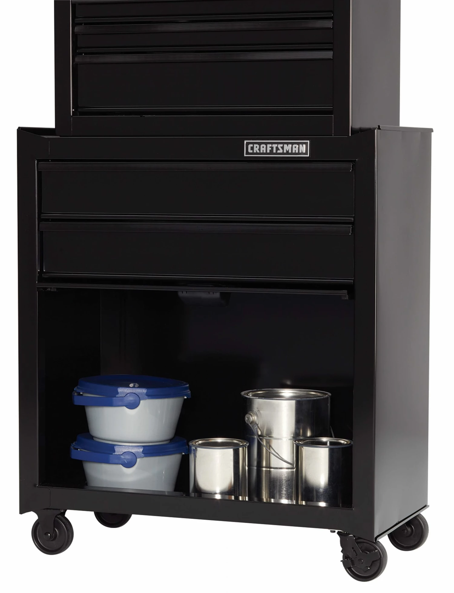 Proudly Made in the USA with Global Materials in Sedalia, Missouri. The 1000 Series 26.5-in Wide 5 Drawer Tool Chest and Rolling Cabinet is an ideal storage method to help organize your garage. Large power tools and supplies can be tucked away in an bulk storage space that is neatly covered by a lift-up panel.