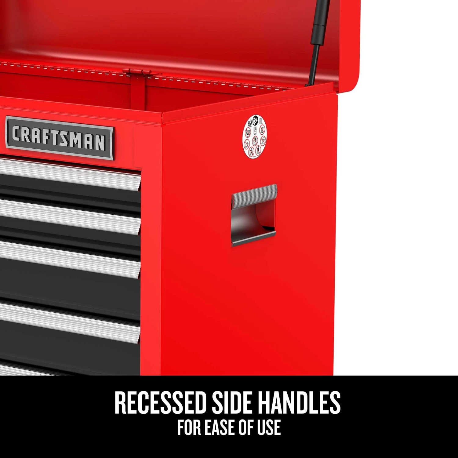 Get the durability of solid steel and double wall construction with the S2000 26-in 5-Drawer Metal Tool Chest. The chest combines strength with convenience, featuring plenty of storage space for your tools and tool pieces and an integrated charging station that allows you to charge power tools and your smartphone at the same time. The drawer slides were built for high performance, with the ability to support 100 lbs. of weight while the internal locking system offers security to keep your valuable tools in place and safe.