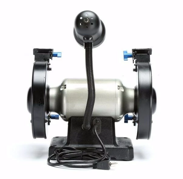 - Delta 8-in bench grinder with light features 36 and 60 grit wheels for a variety of grinding operations