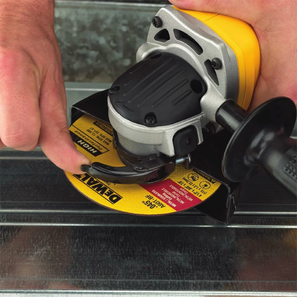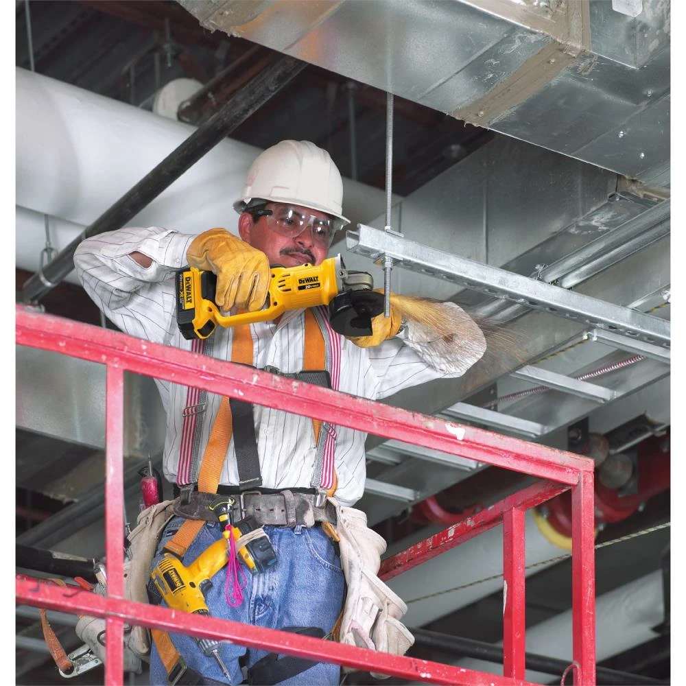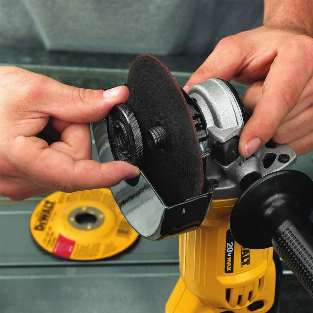 The DCG412B 20V MAX Lithium Ion 4-1/2-in/5-in Grinder increases productivity with features like Quick-Change™ wheel release, convenient trigger switch with lock-off button, and extended run-time battery. Battery and charger sold separately.