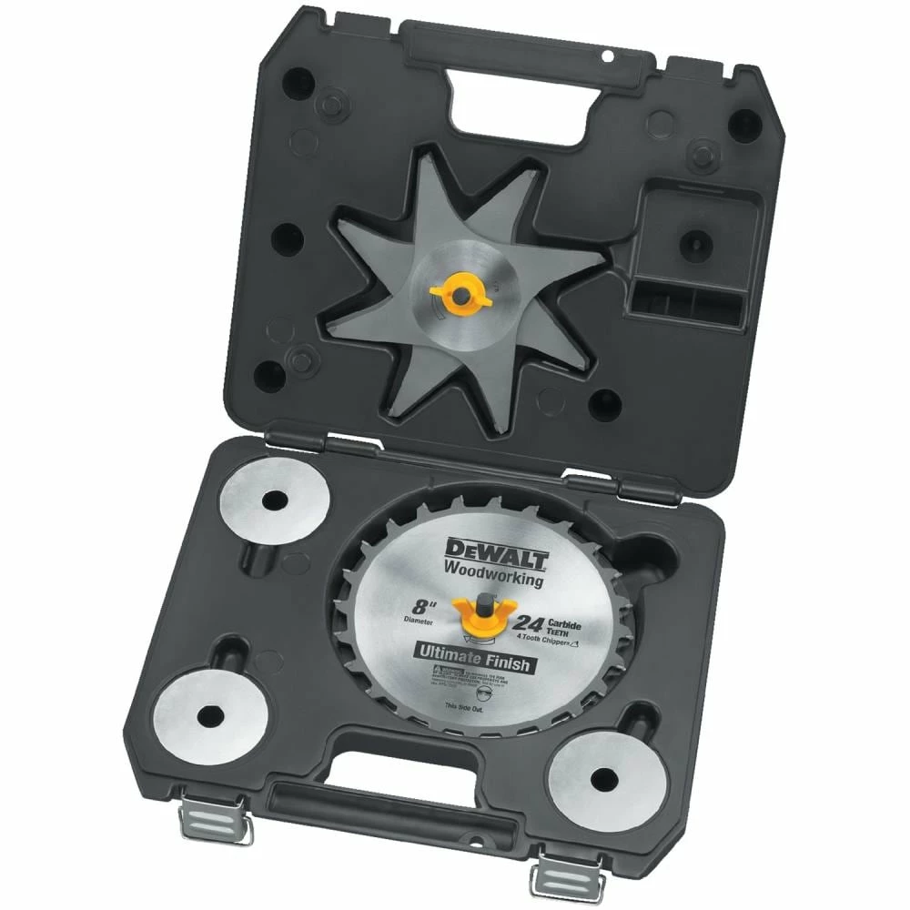 Featuring heavy-gauge, laser-cut plates and micro grain carbide teeth, DEWALT dado cut woodworking saw blades deliver clean, precise cuts while reducing splintering. 4-Tooth chippers provide smooth, flat-bottom cuts, while stainless steel shims enable ultra-fine width adjustments. Ideal for dado cuts, rabbet cuts, tenons, and half-lap joints in hard woods, soft woods, plywood, and melamine.