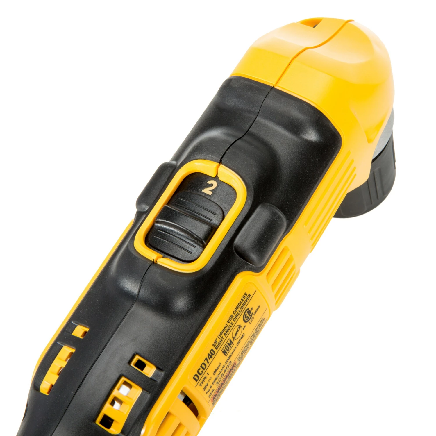 The DCD740B 20 V MAX lithium ion 3/8 In. right angle drill/driver is ideal for a variety of applications. The multi-trip trigger and compact design make it comfortable and easy to reach tight spaces.