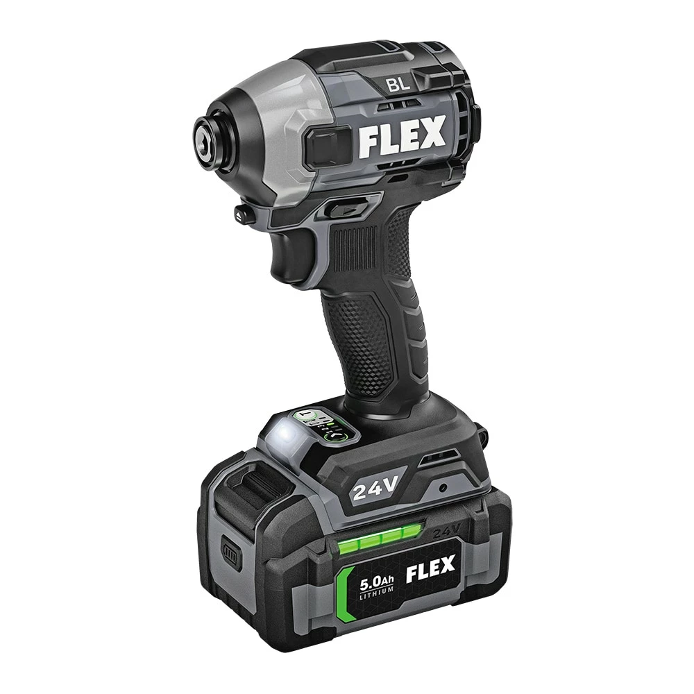 The FLEX 24V Brushless 1/4-in. Quick Eject Hex Impact Driver with Multi-Mode delivers unrivaled power for the toughest fastening applications. Take control with three speed modes that lets you adapt to the application at hand. Work with complete confidence and enhanced capabilities, including self-tapping screw modes which prevent over-tightening and strippage. Switch gears fast with the quick eject collet for easy, one-handed bit changes. Built-in LED lighting keeps you on the mark. All this dependability is built on the FLEX Advantage of unmatched battery power, runtime, and fast-charging speed. Protected with a 5-year end-to-end warranty.
