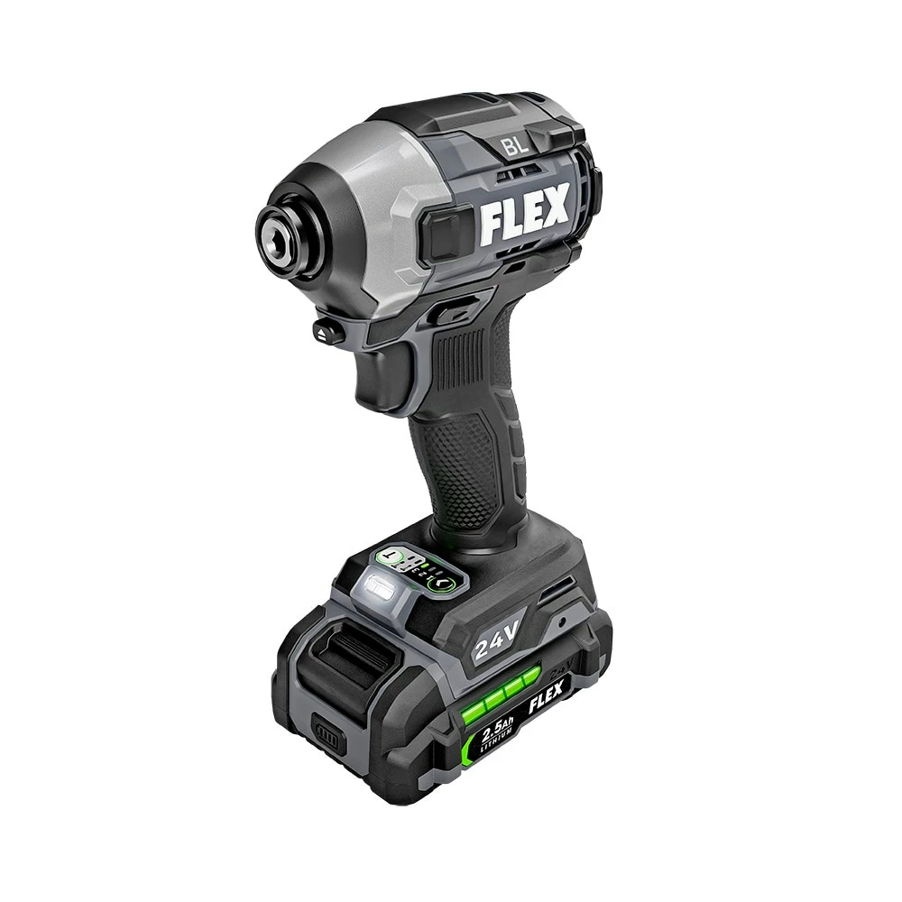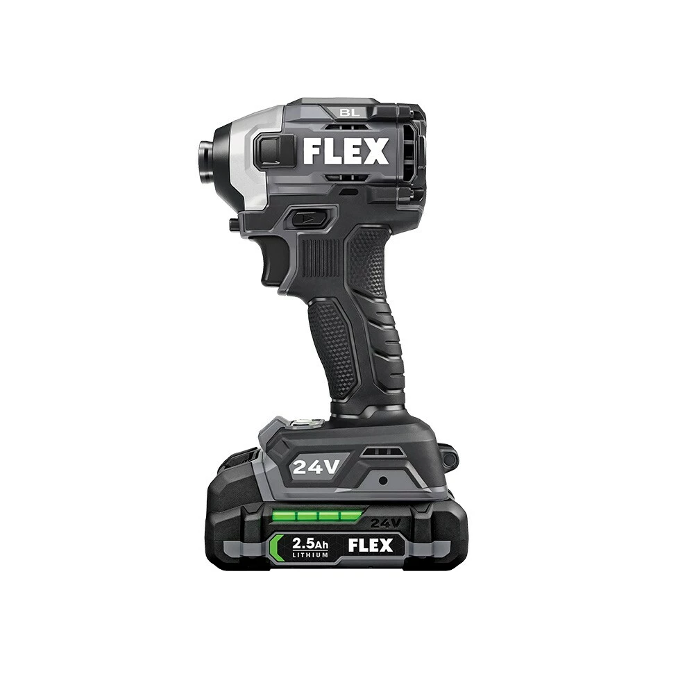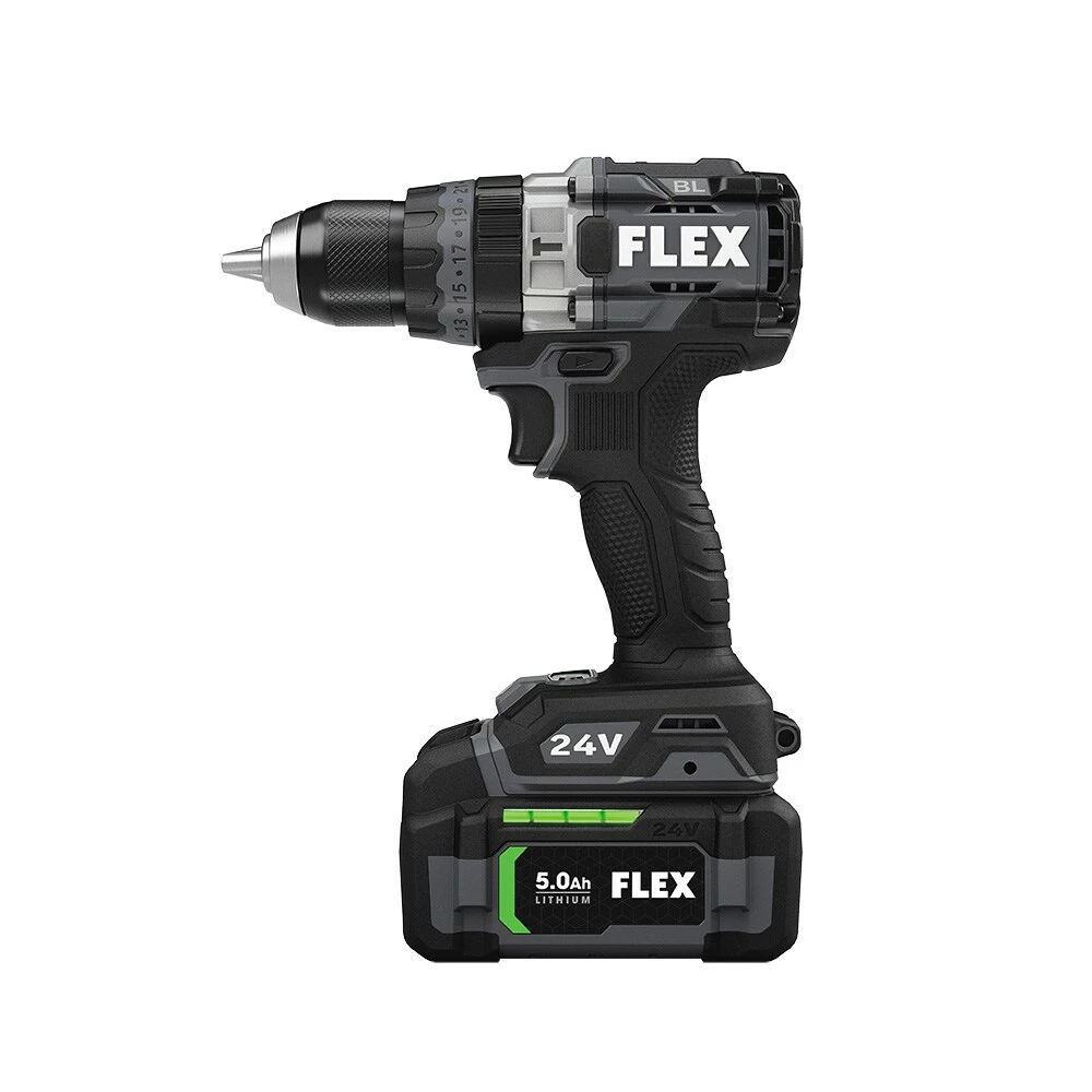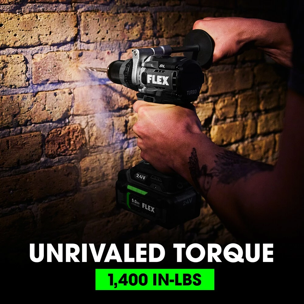 Bring your best to drilling and fastening applications with the combined power and control of FLEX SENSOR-FREE™ Brushless MOTOR 1/2-in. 2-Speed Hammer Drill Driver and 1/4-in. Quick Eject Hex Impact Driver. This hammer drill clocks in at 1,400 in-lbs. of industry-leading torque, 2,500 RPM, and 40,000 IPM. The hex impact driver delivers 2,500 in-lbs. of torque at 4,000 RPM with multi-mode control. Total FLEX 24V cross-compatibility ensures these tools share the FLEX Advantage of unrivaled FLEX battery power, runtime, and charging capability. Includes both tools, (1) 2.5Ah Lithium-ion battery, (1) 5.0Ah Lithium-ion battery and 160W Fast charger. All protected by a 5-year end-to-end product warranty.