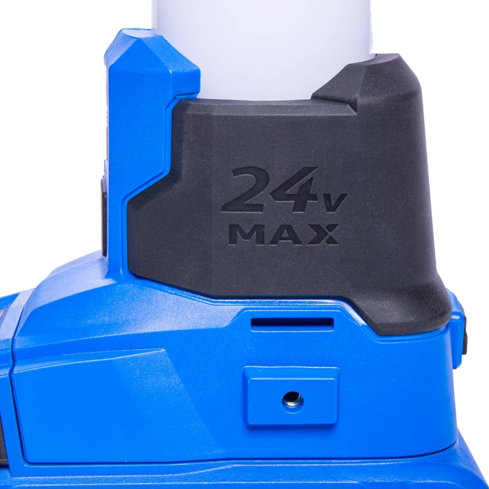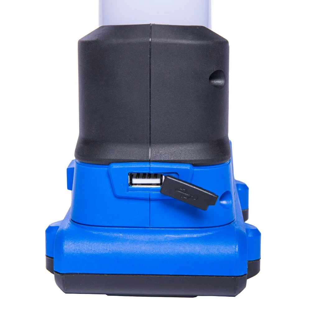 The Kobalt 24-Volt Max Area Light with USB charging offers the portability and brightness for all your projects. Two LED brightness settings up to 1000 lumens along with 360 or 180 degree radius modes ensures you’ll never be in the dark. An on board USB port allows you to keep your mobile devices charged and powered. It is compatible with all Kobalt 24-volt batteries and chargers (sold separately), and also comes with a 5-year limited warranty.