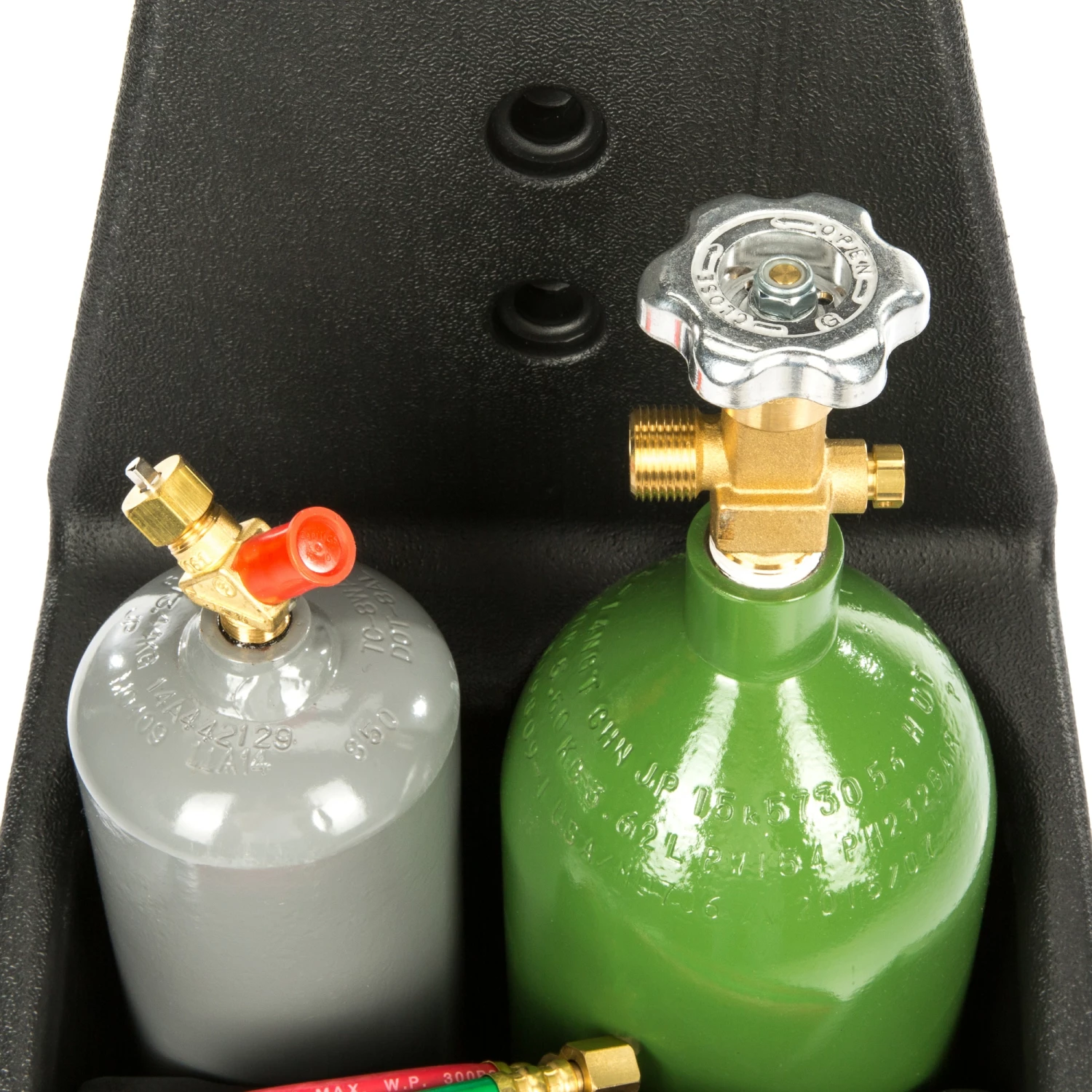- Designed to carry (1) MC acetylene cylinder and (1) 20 cu-ft oxygen cylinder