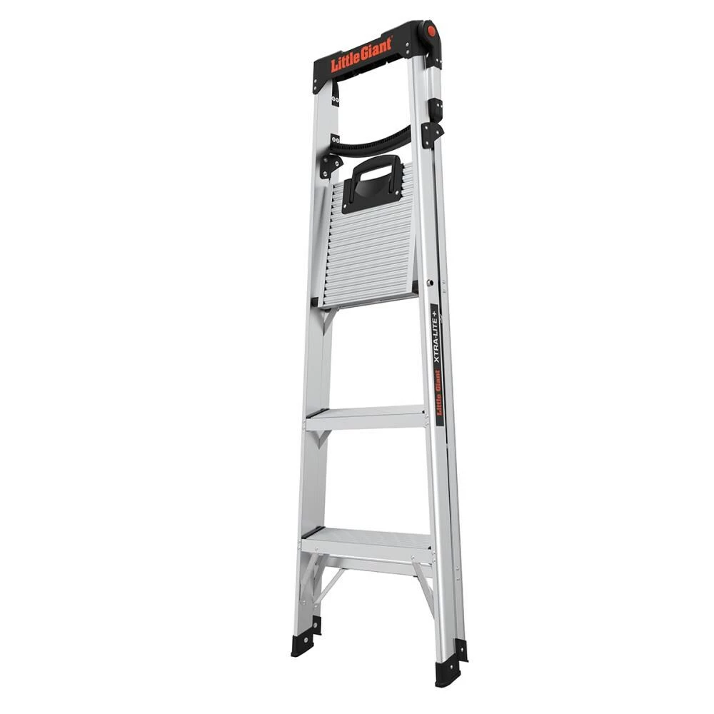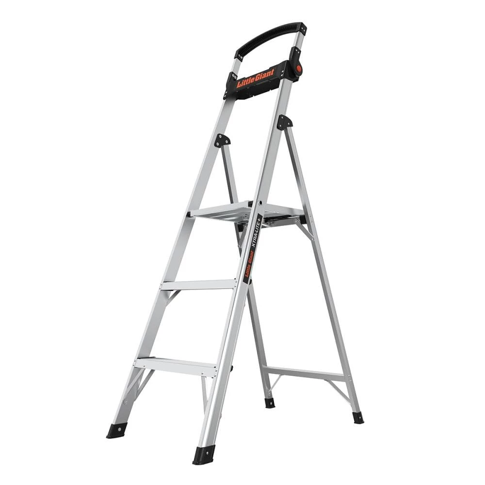 Not every task requires a large extension ladder. Made from lightweight aluminum, the Little Giant® Xtra-Lite Plus™ stepladder simplifies your daily tasks, giving you a versatile tool for any occasion. Meeting or exceeding all OSHA and ANSI standards, the Xtra-Lite Plus ladder is rated IAA to hold 375 lbs. if you are going to be standing on your stepladder for long periods of time, you deserve to be comfortable. With the standing platform, you can firmly place your feet on the top step, helping you feel more balanced and more comfortable while working atop the Xtra-Lite Plus. Gone are the days of feeling vertigo while working on a stepladder. With the safety handrail, you will feel perfectly stable while working on the Xtra-Lite Plus. As an added bonus, the ladder also features a versatile tool tray top cap. Place your smart phone, hammer, drill or other materials on the tray for easy access while working.