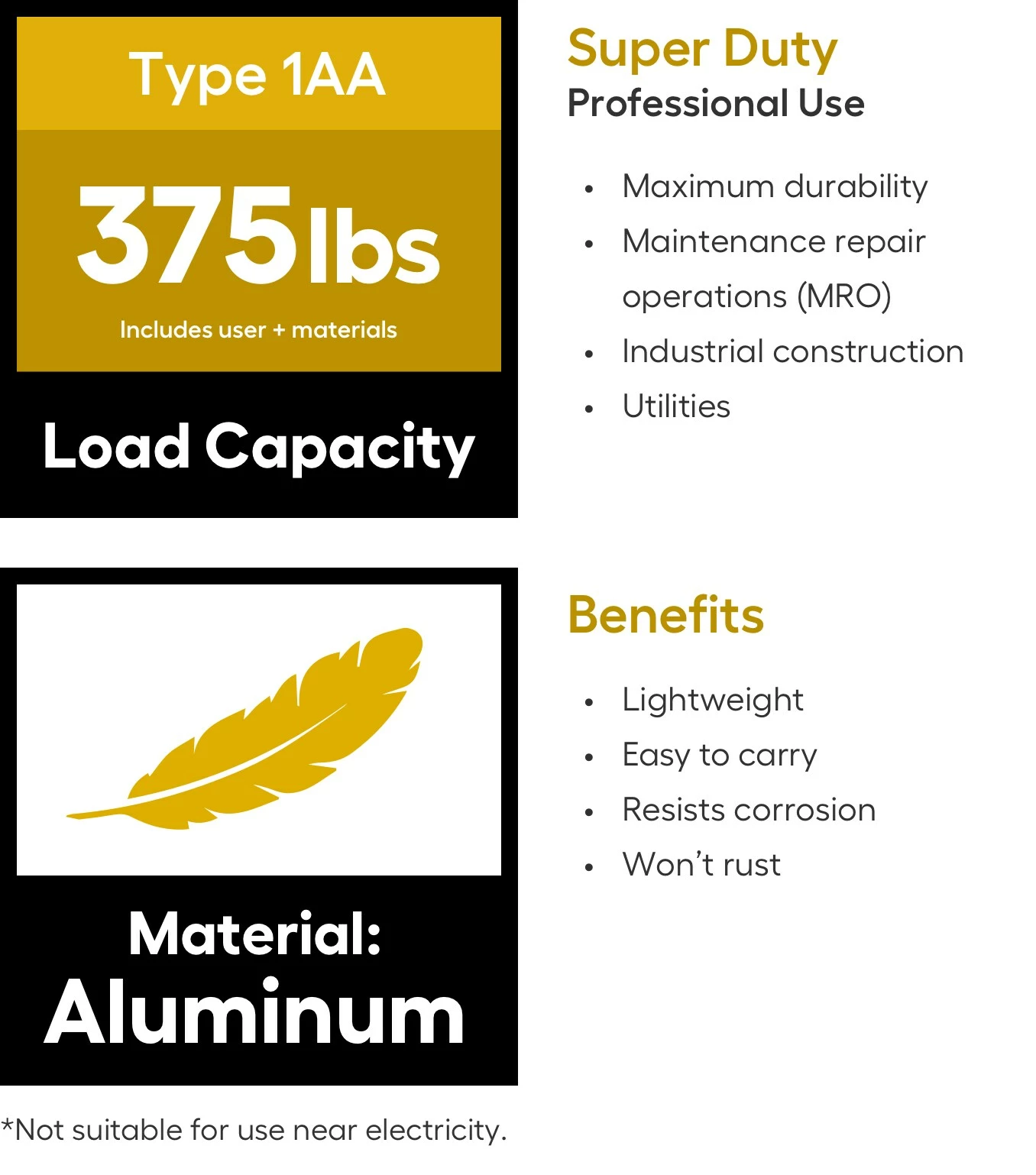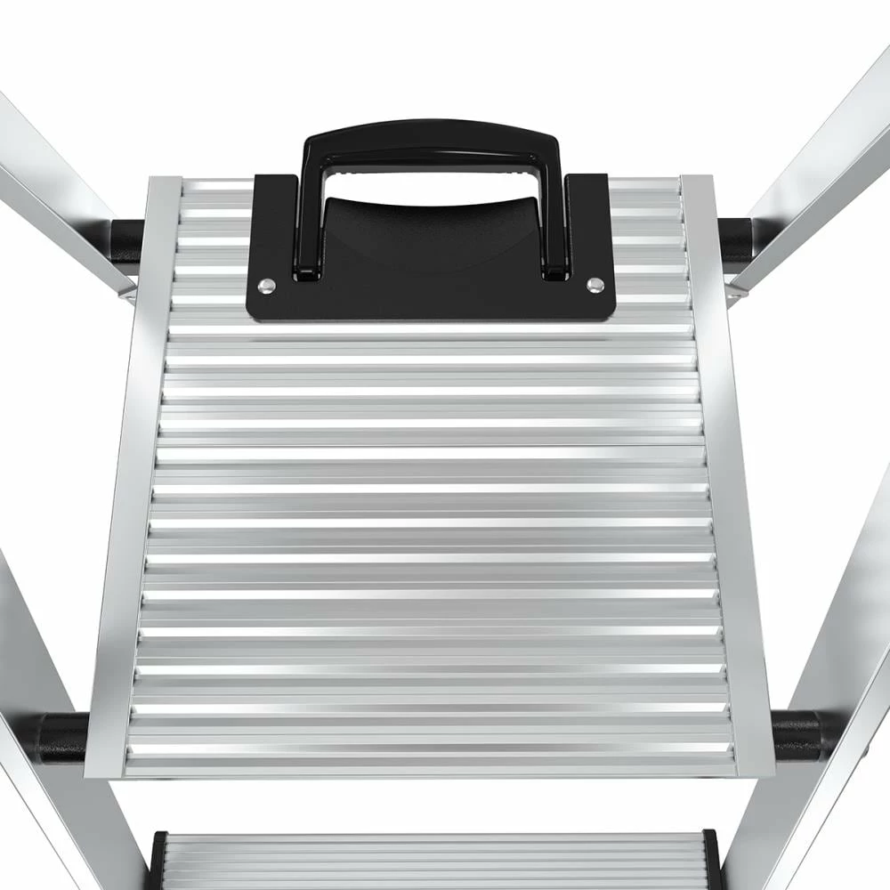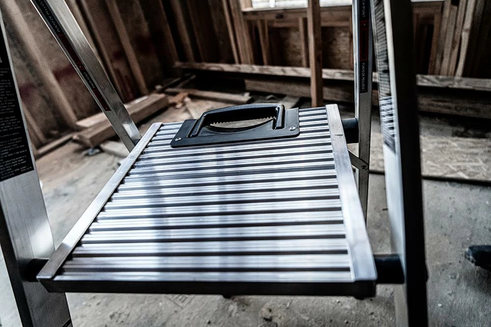 - Lightweight, aluminum stepladder with large, comfortable standing platform
