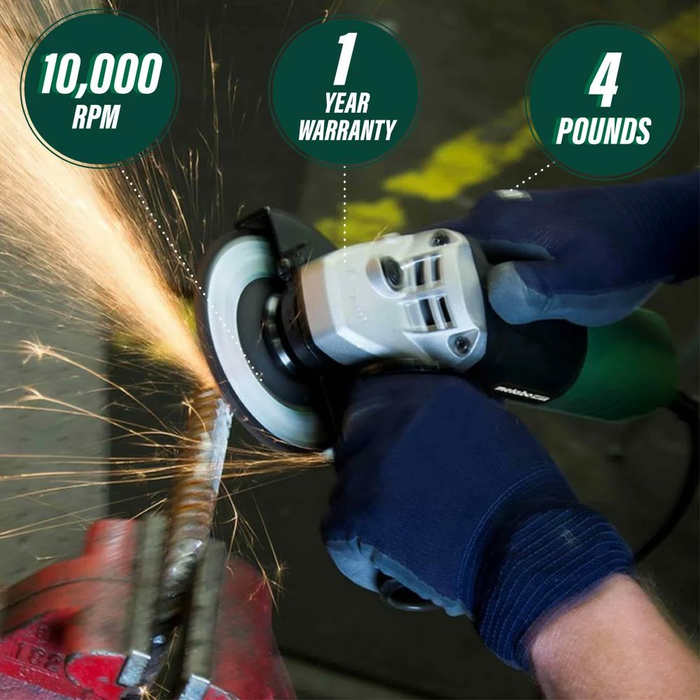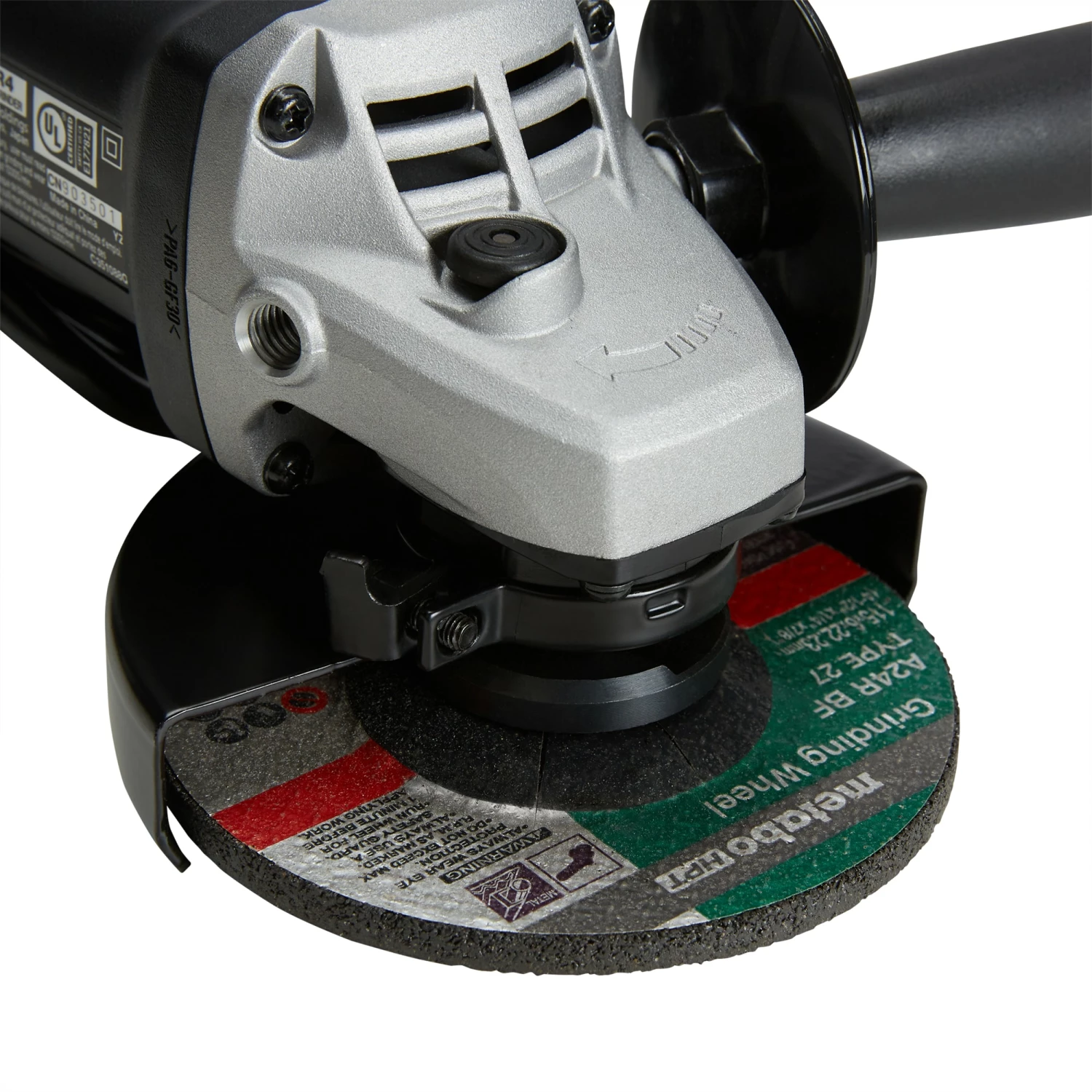The G12SR4 4-1.2 in disc grinder makes improvements on previous models with smaller grip diameter which contributes to easier control and less fatigue with continuous use, increased performance with a higher power input of 6.2 amp and higher overload durability. The powerful 6.2 amp motor delivers great performance on tough jobs. The new motor design creates better cooling efficiency and ensures high motor durability. The G12SR4 also has a spindle lock for easy wheel changes and includes five grinding disc. This tool is ready to work out of the box.