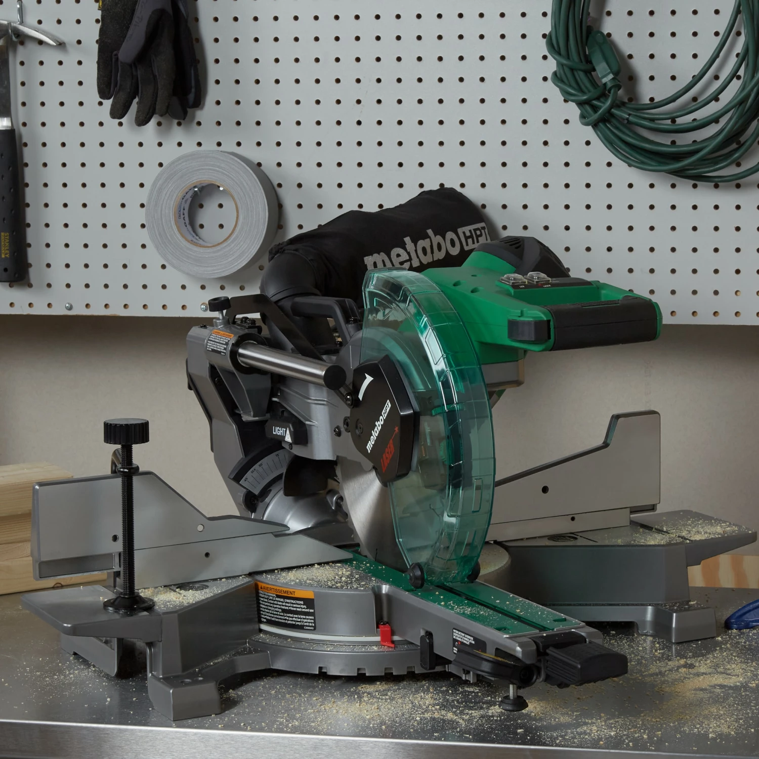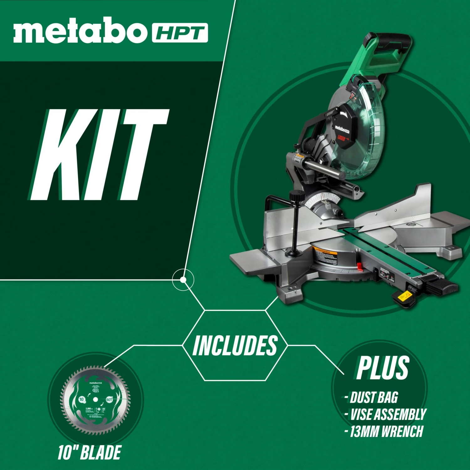 The C10FSHCT is a 10 In. sliding compound dual bevel miter saw with laser marker system. It is designed to deliver a professional finish. The C10FSHCT is lightweight (40.7 lbs.) and equipped with the new simple and compact slide structure. This slide system decreases the footprint of the saw by up to a foot, enabling the saw to sit nearly flush against a wall or on a bench without compromising the range of movement. For this reason, the C10FSHCT miter saw is a great miter saw for small shops and tight garages. The saw is equipped with an LED light to give the user more visibility and a safer work environment in low light situations. This saw does not include soft start
