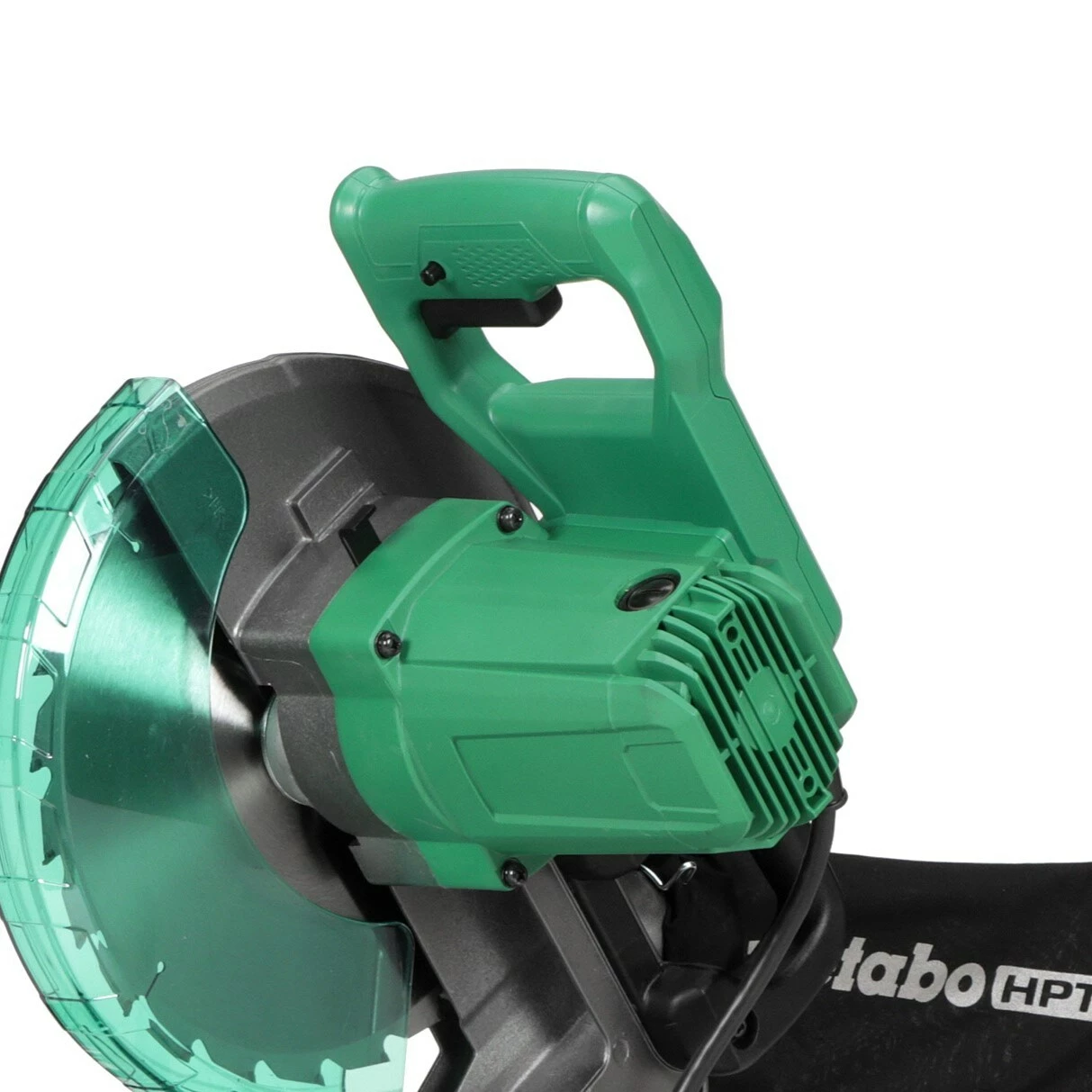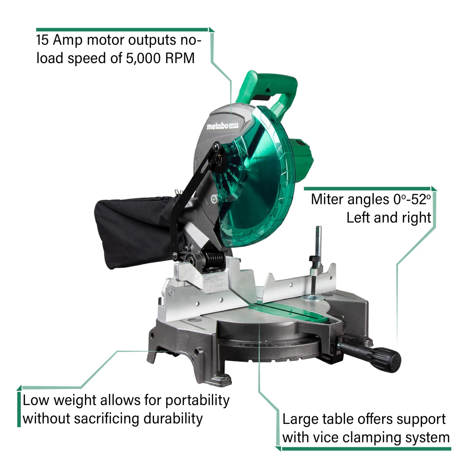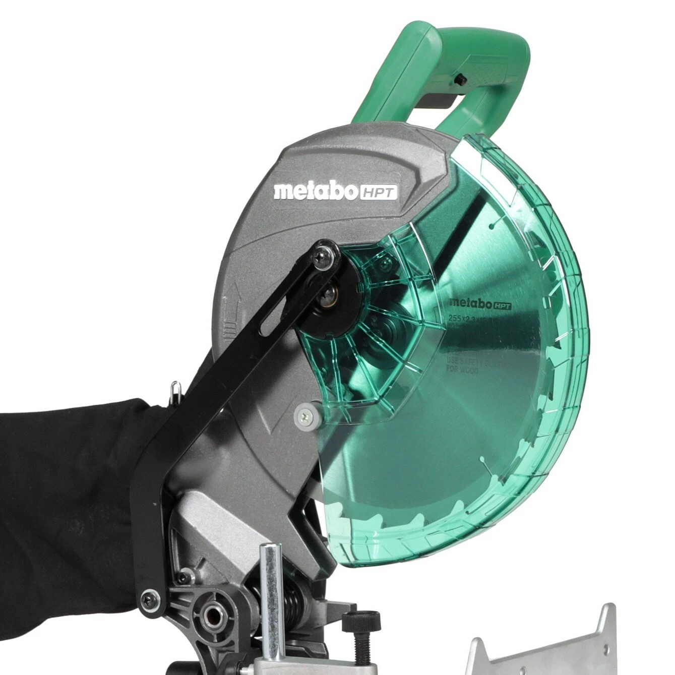 The Metabo HPT C10FCG 15 Amp 10 In. compound miter saw is ideal for trim carpenters, framers, and woodworkers who demand precision, reliability and versatility on the job. The 15 amp motor generates a no-load speed of up to 5,000 RPM for making crosscuts and miters with ease, even on the toughest cutting jobs. The C10FCG is lighter than its predecessor (model C10FCE2) weighing just 24.2 lbs. for easier transport. It’s the lightest 10 In. compound miter saw in its class to date. It has a large table with a vice clamping system to hold your workpiece safely in place. The thumb-actuated positive miter stops allow for simple miter adjustments. The bevel has a range of 45-degrees to the left to provide clean and accurate bevel cuts. The C10FCG has a large extended flip fence which rises to 4 In. to allow for accurate cutting of large workpieces. To keep your work space clean and safe, a dust collector attachment is included. It is covered by Metabo HPT’s 5-year warranty.
