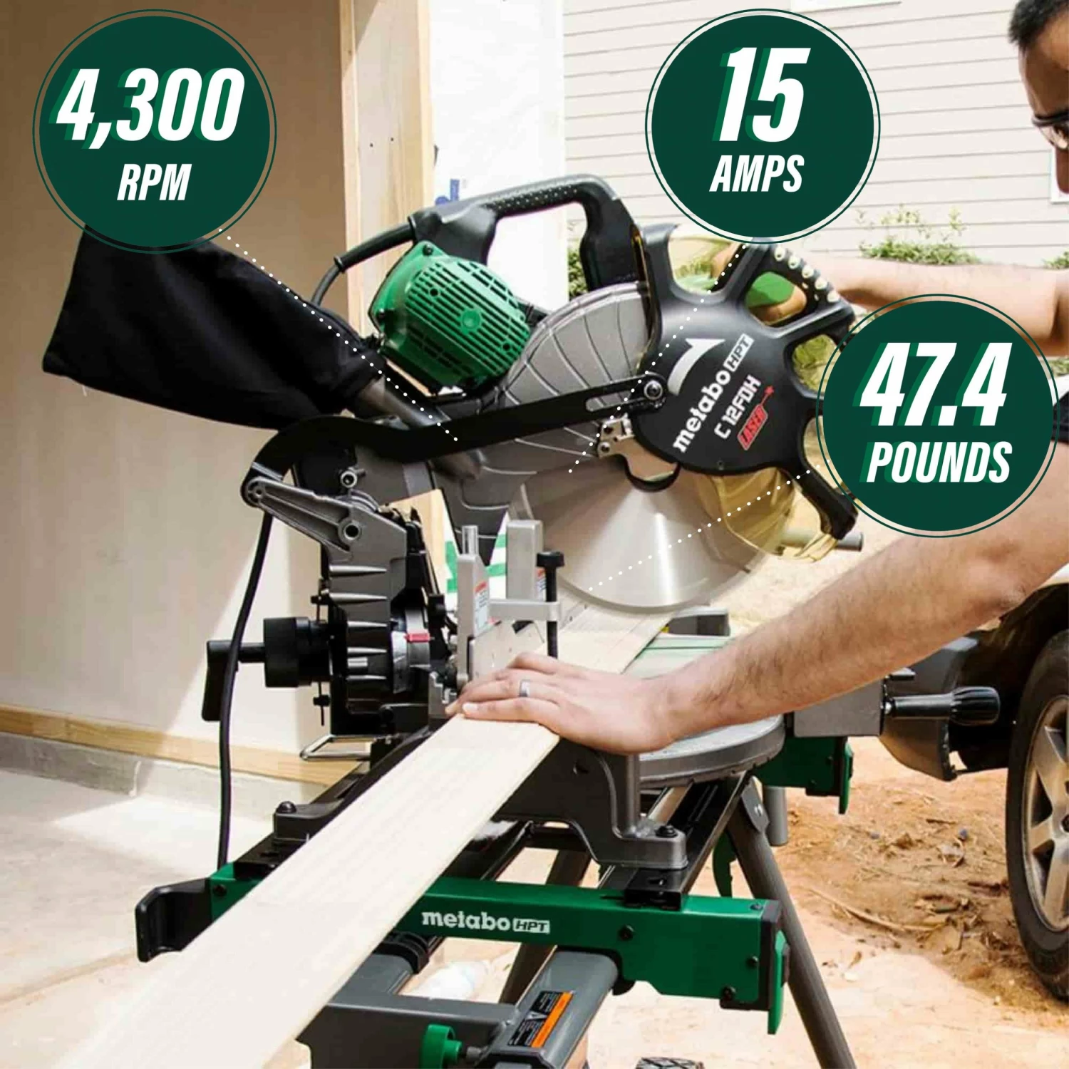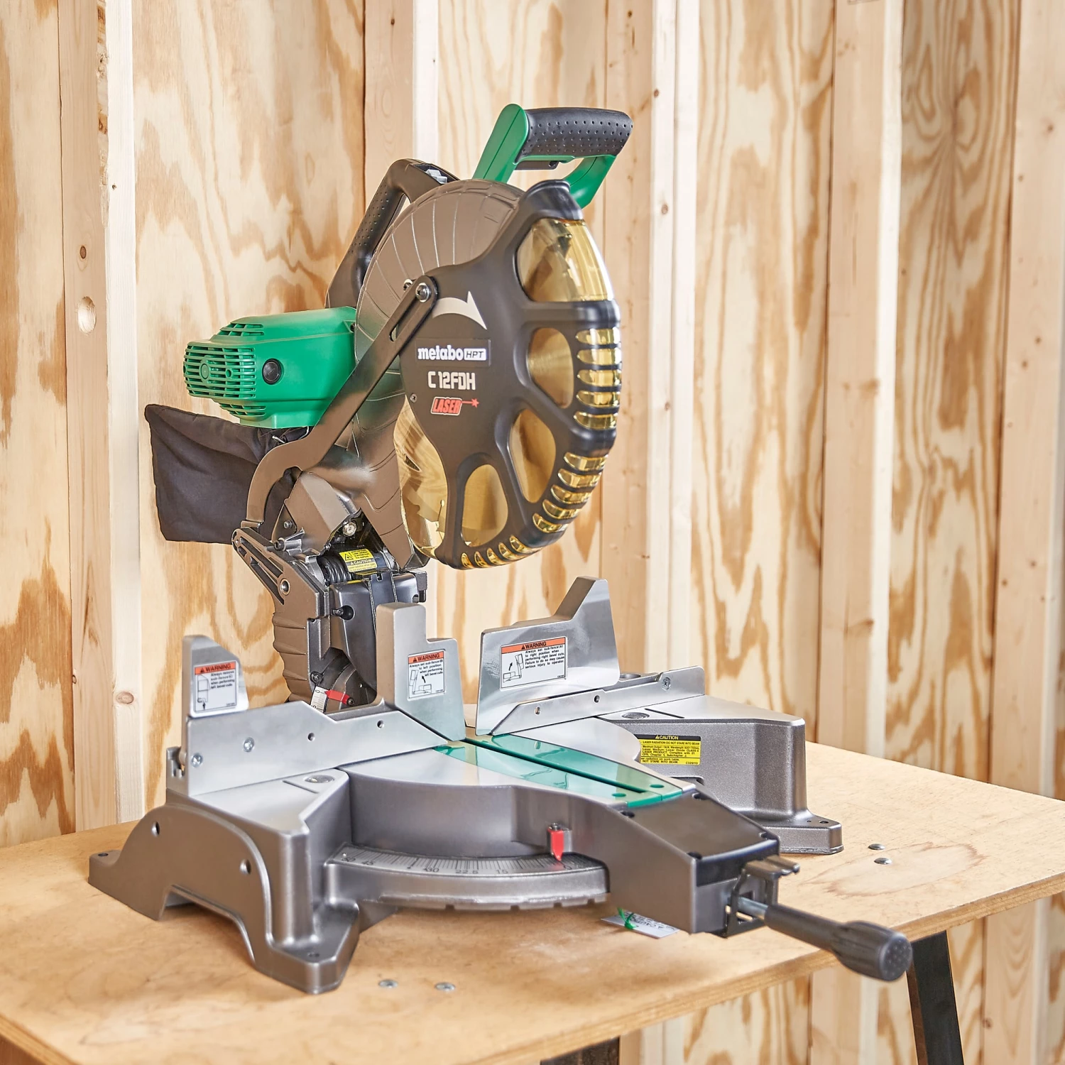 The C12FDH 12 inch dual compound miter saw with dual bevel features; exclusive laser marker system for cutting accuracy. The saw Head bevels to the right or left- allowing the material to stay securely in place for ultimate cutting efficiency. It cuts various types of wood, crown molding, plywood, decorative panels, soft fiberboard, hardboard and aluminum sashes.