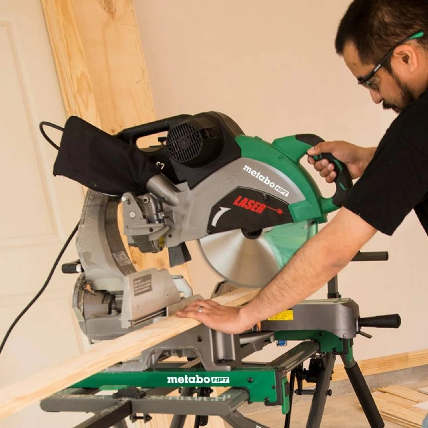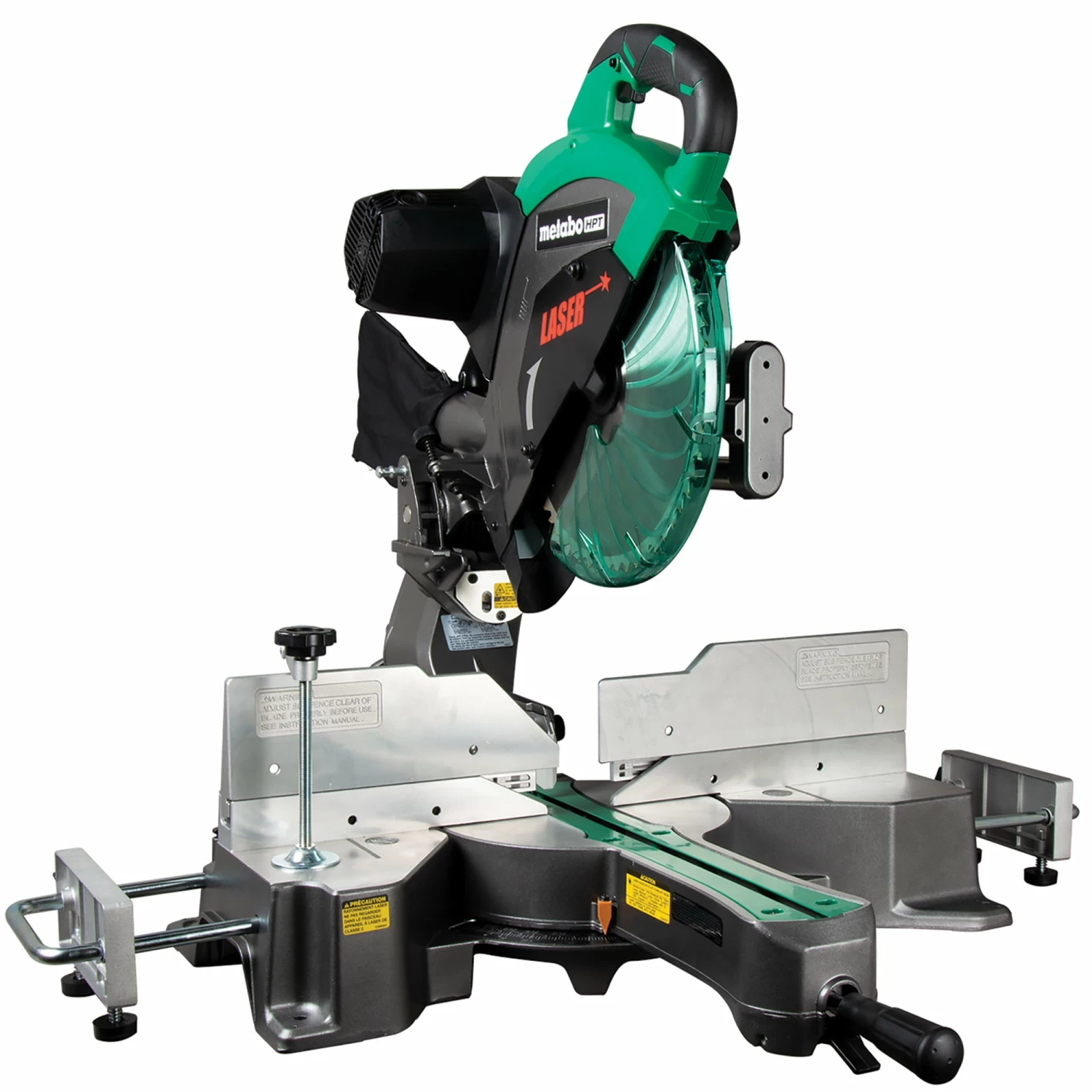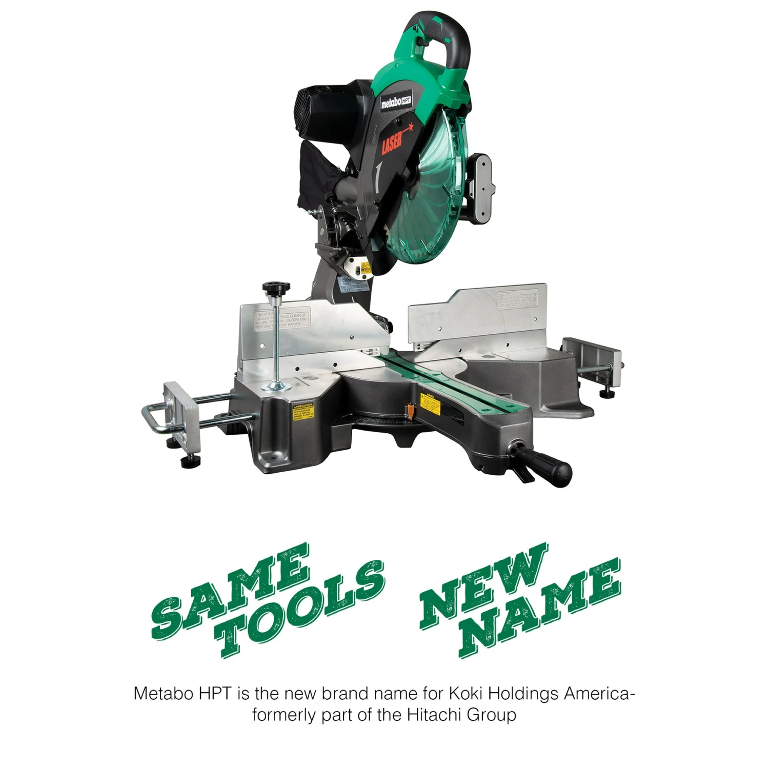 The new Metabo HPT C12RSH2 sliding dual compound miter saw featuring a powerful 15 amp motor to power through the toughest jobs. It is equipped with a compact slide system that requires zero rear clearance for even the tighest of spaces. Tackle any cut with a wide miter range from 0-57 degree to the right and 0-45 degree to the left along with the ability to bevel from 0-45 degree to the right and left. The fixed rail system allows the saw head to smoothly glide along the fixed rails, eliminating the rear clearance that other sliding miter saws require. The compact slide system decreases the footprint of the saw by up to a foot saving you valuable real estate in any shop environment. The easily adjustable tool-less laser marker allows for precise cuts.