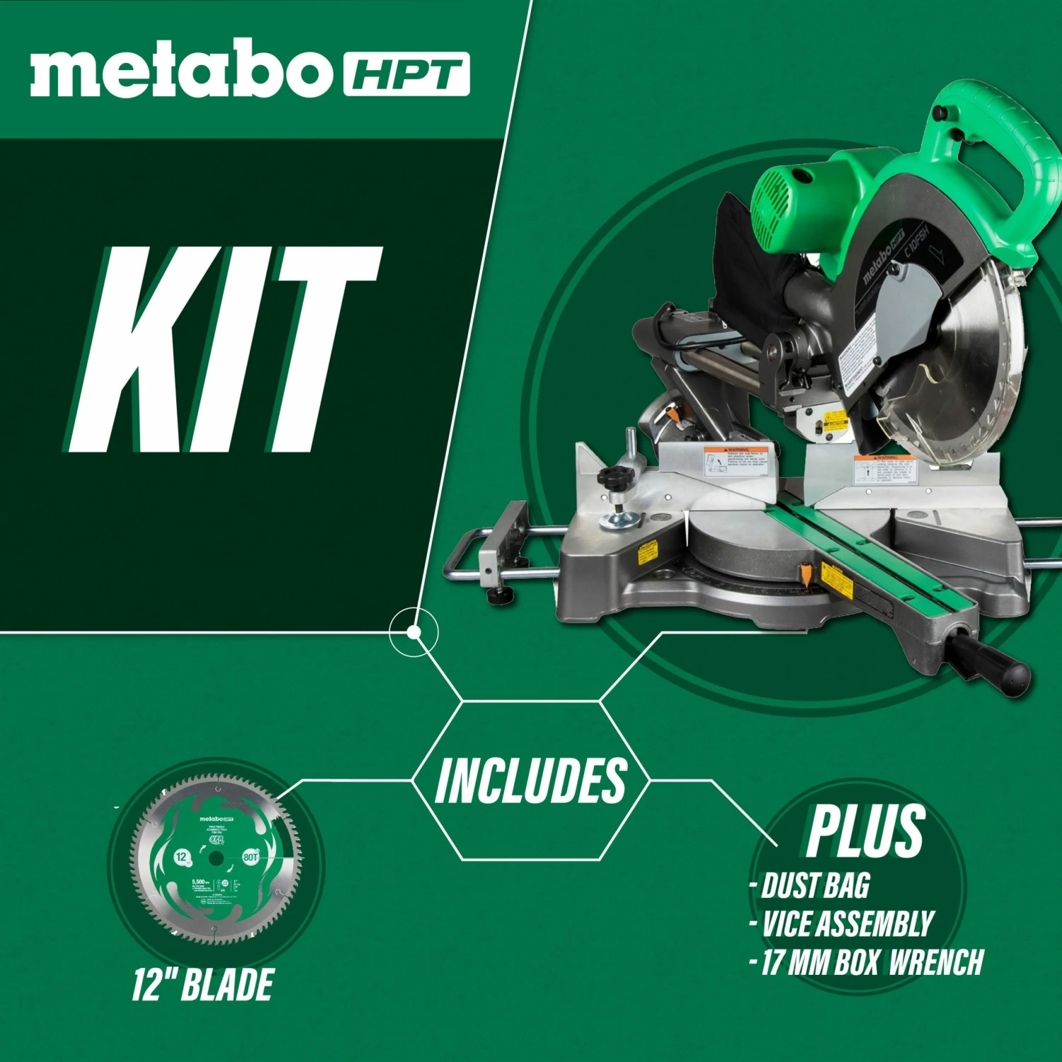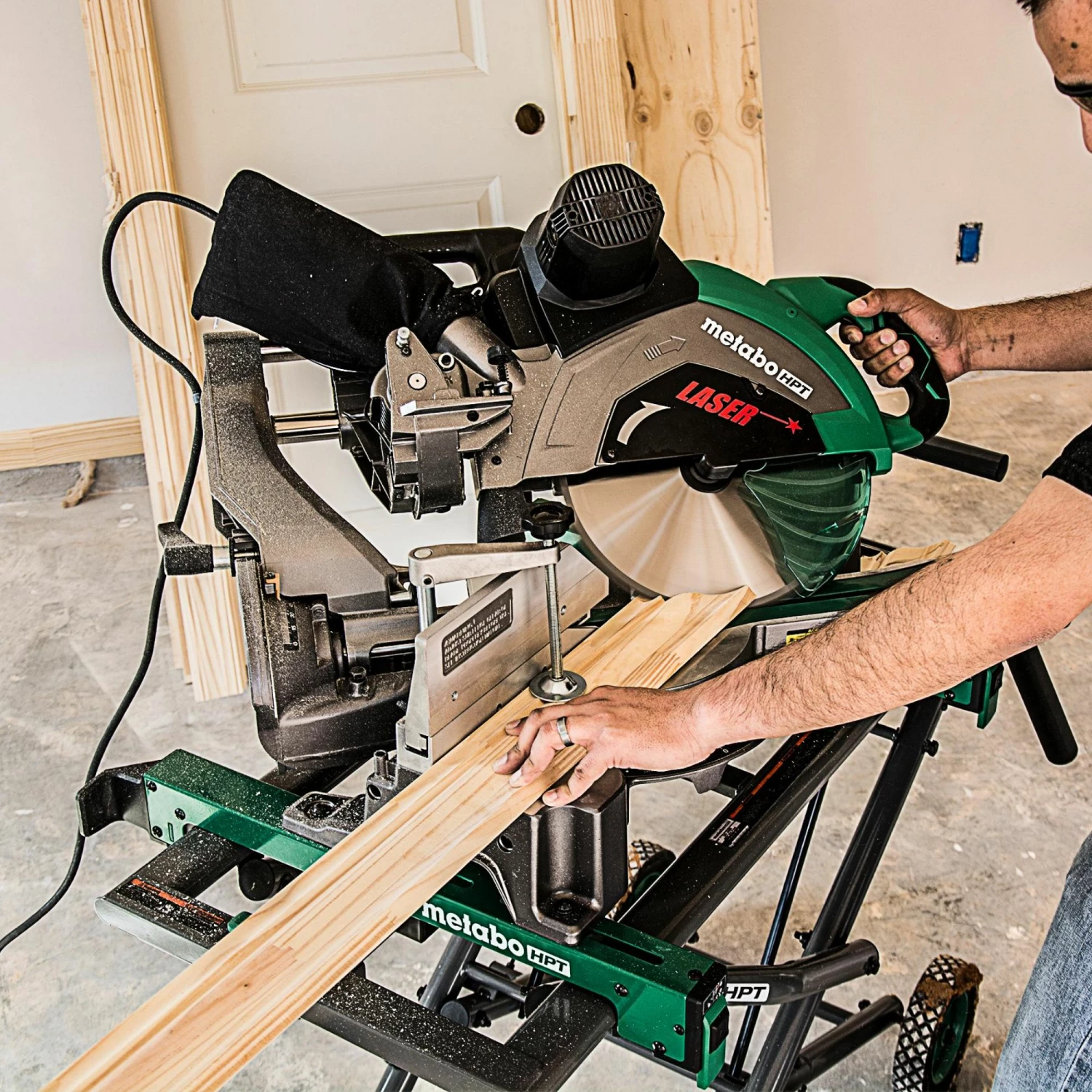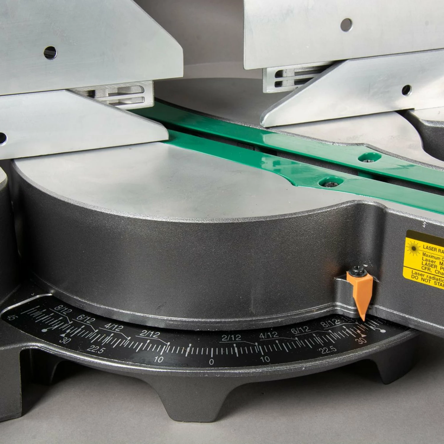 The new Metabo HPT C12RSH2 sliding dual compound miter saw featuring a powerful 15 amp motor to power through the toughest jobs. It is equipped with a compact slide system that requires zero rear clearance for even the tighest of spaces. Tackle any cut with a wide miter range from 0-57 degree to the right and 0-45 degree to the left along with the ability to bevel from 0-45 degree to the right and left. The fixed rail system allows the saw head to smoothly glide along the fixed rails, eliminating the rear clearance that other sliding miter saws require. The compact slide system decreases the footprint of the saw by up to a foot saving you valuable real estate in any shop environment. The easily adjustable tool-less laser marker allows for precise cuts.