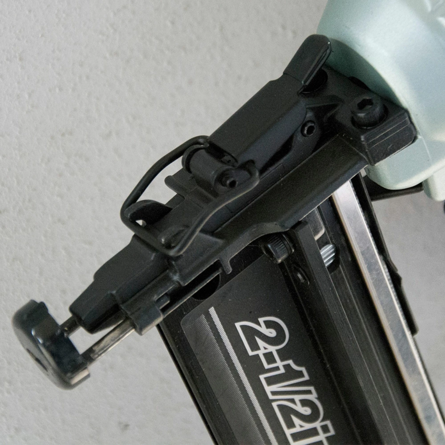 The NT65M2S 16-gauge finish nailer features a non-slip elastomer grip trigger and ergonomically designed simple flip actuation switch. It is ideal for installing molding, chair rail, cabinetry and other fine finish applications. The NT65M2S accepts 16-gauge finish nails in lengths ranging from 1″ Up to 2-1/2″ and is equipped with Metabo HPT’s signature air duster button to conveniently blow away dust and debris instantly to clear the work surface.