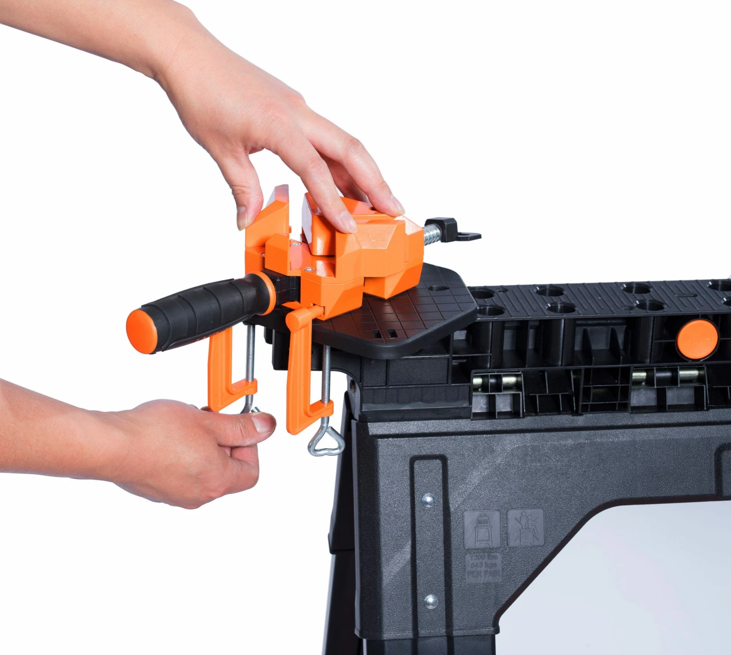- Includes two sawhorses and two Jorgensen 12-in 150-lb EZ-Hold trigger clamps