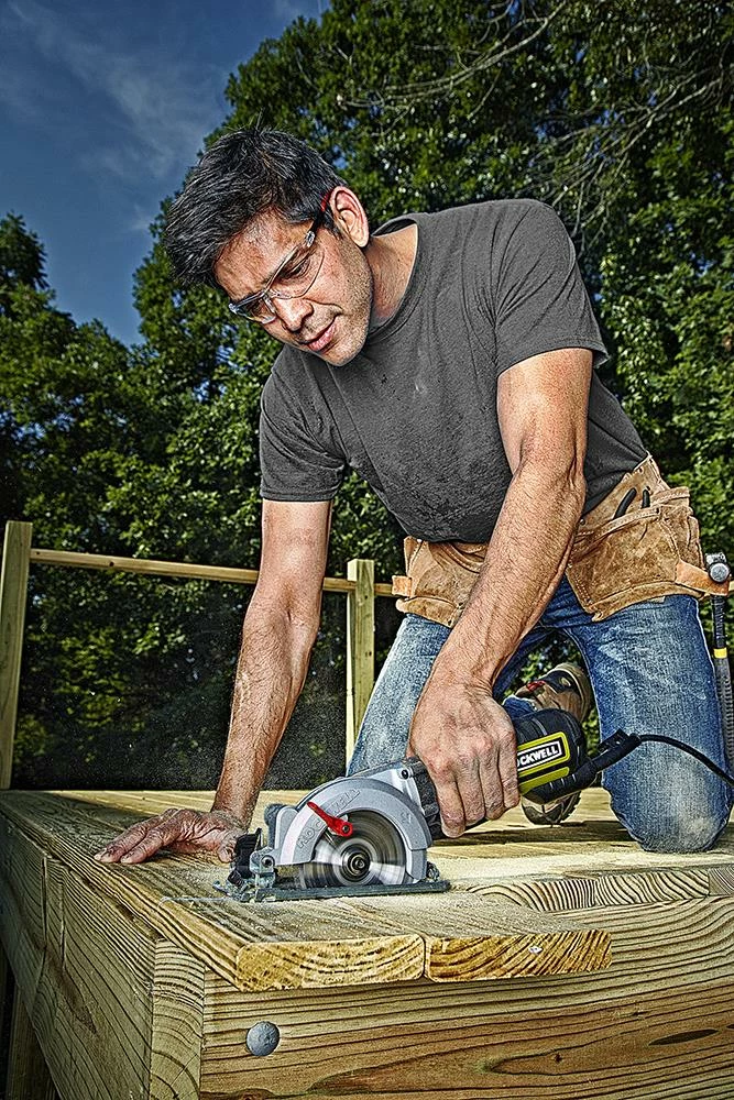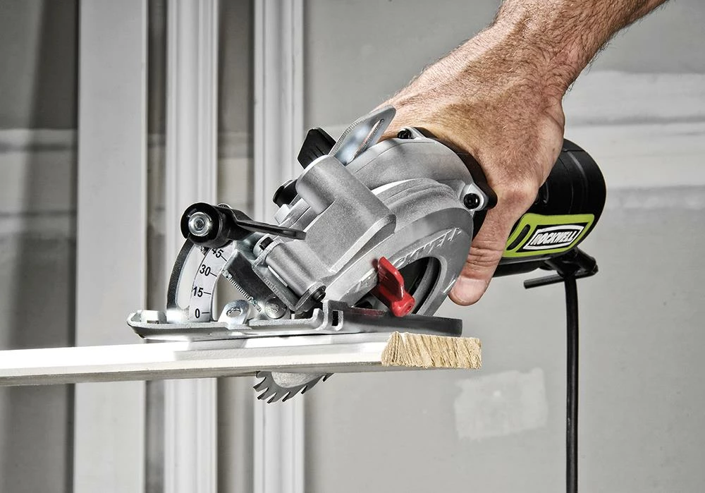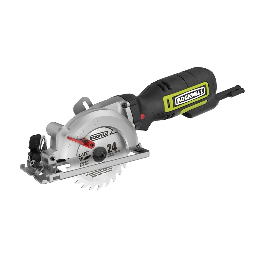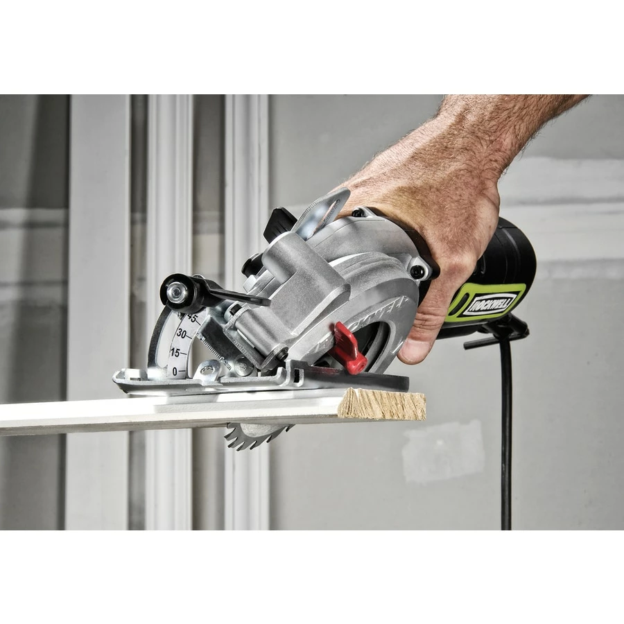The RK3441K compact circular saw can essentially replace a muncher’s or professionals need for a full-size 7-1/4 In. circular saw. This saw was born to cut wood, especially 2 In. final lumber materials. This saw weighs only 5 lbs, so it is easy to transport and maneuver (especially overhead). The slim, infeed grip design provides great comfort, balance, and control. The 4-1/2 In. blade cuts 2x4s in a single pass and is about 50% lighter than conventional 7-1/4 In. circular saws. Plus, the lightweight saw’s left-sided blade design provides remarkable cut-line visibility. The saw’s 4-1/2 In. blade has a kerf that is less than half the thickness of larger 7-1/4 In. circular saw blades. Since this smaller, thinner blade takes much less effort and motor strain to cut through the material, the 5 Amp to 3500 rpm saw can match the performance of full-size circular saws. The saw’s maximum cutting depth at 90Ð is 1-11/16 In. and the bevel capacity at 45Ð is 1-1/8 inch. The saw also features a dust extraction port and a 1-1/4 In. vacuum adapter for dust collection and a clean work environment.