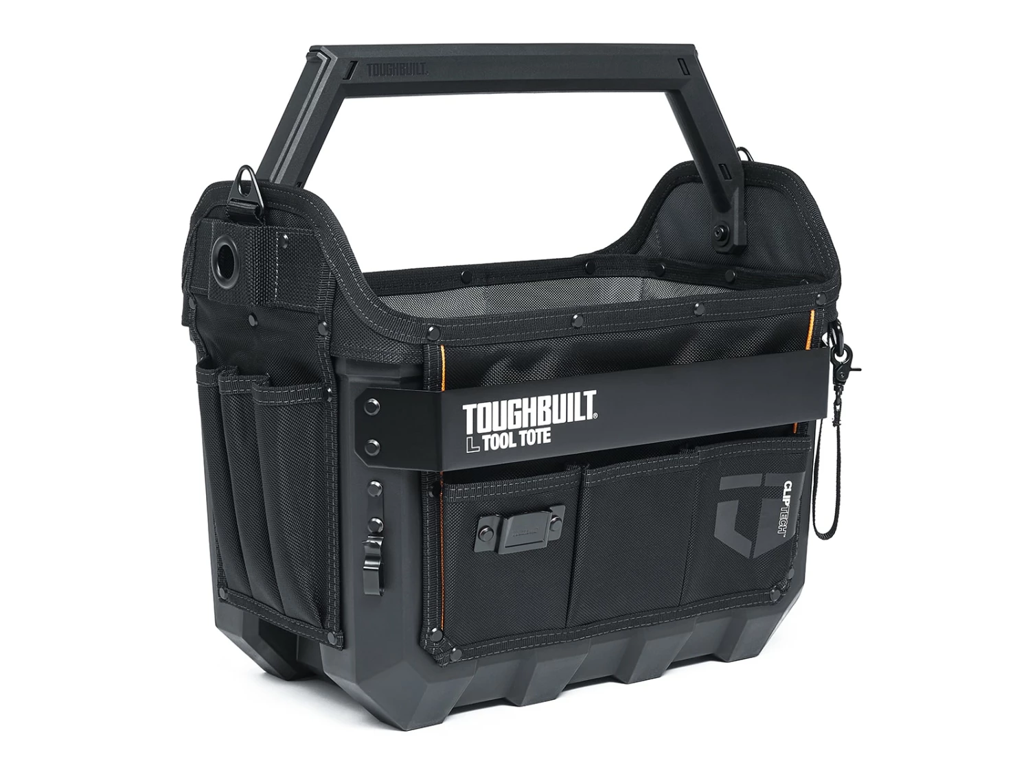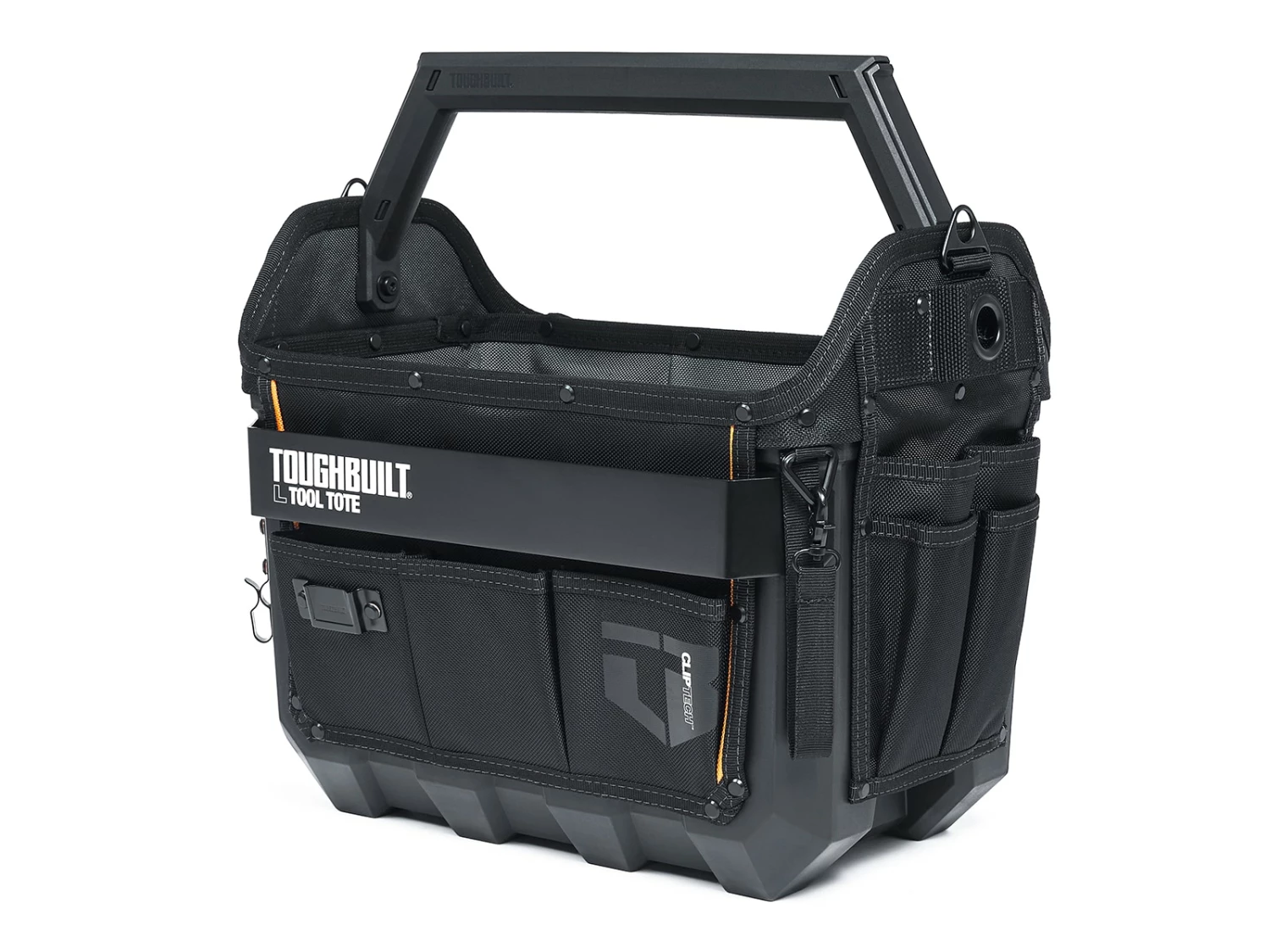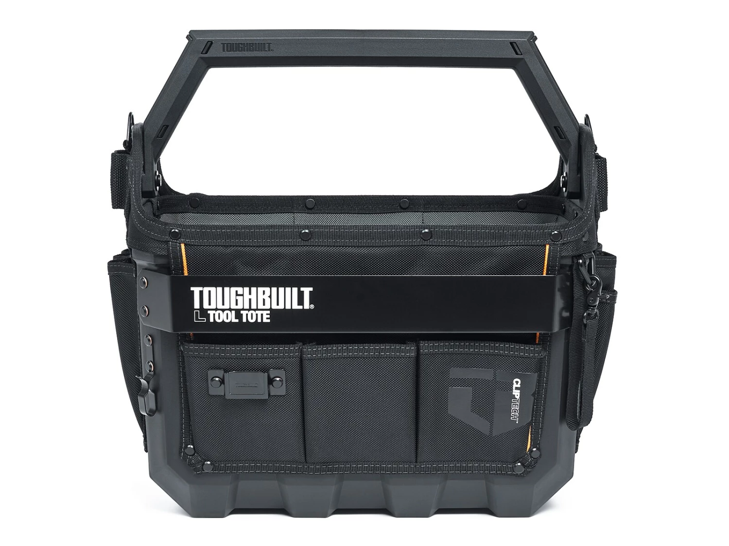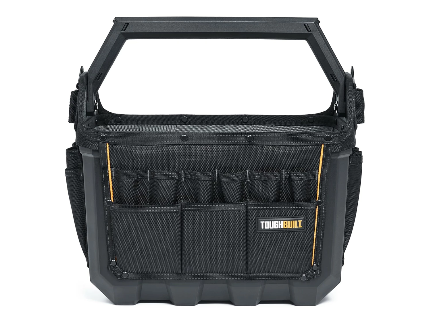 Organize your tools faster and easier.The ToughBuilt® Large Tool Tote transforms how professionals carry tools and supplies. It is compatible with all ToughBuilt clip-on pouches for the most efficient tool organization.The hard body construction outlasts any fabric tote. Made with high-quality PP+HDPE plastics, 1680D fabric, and heavy-duty steel hardware. Its versatile structured external pockets flex to securely hold tools in place and internal pockets keep tools within easy reach. This hard-working tote keeps up with the professional’s rigorous demands and is backed by our Limited Lifetime Warranty.