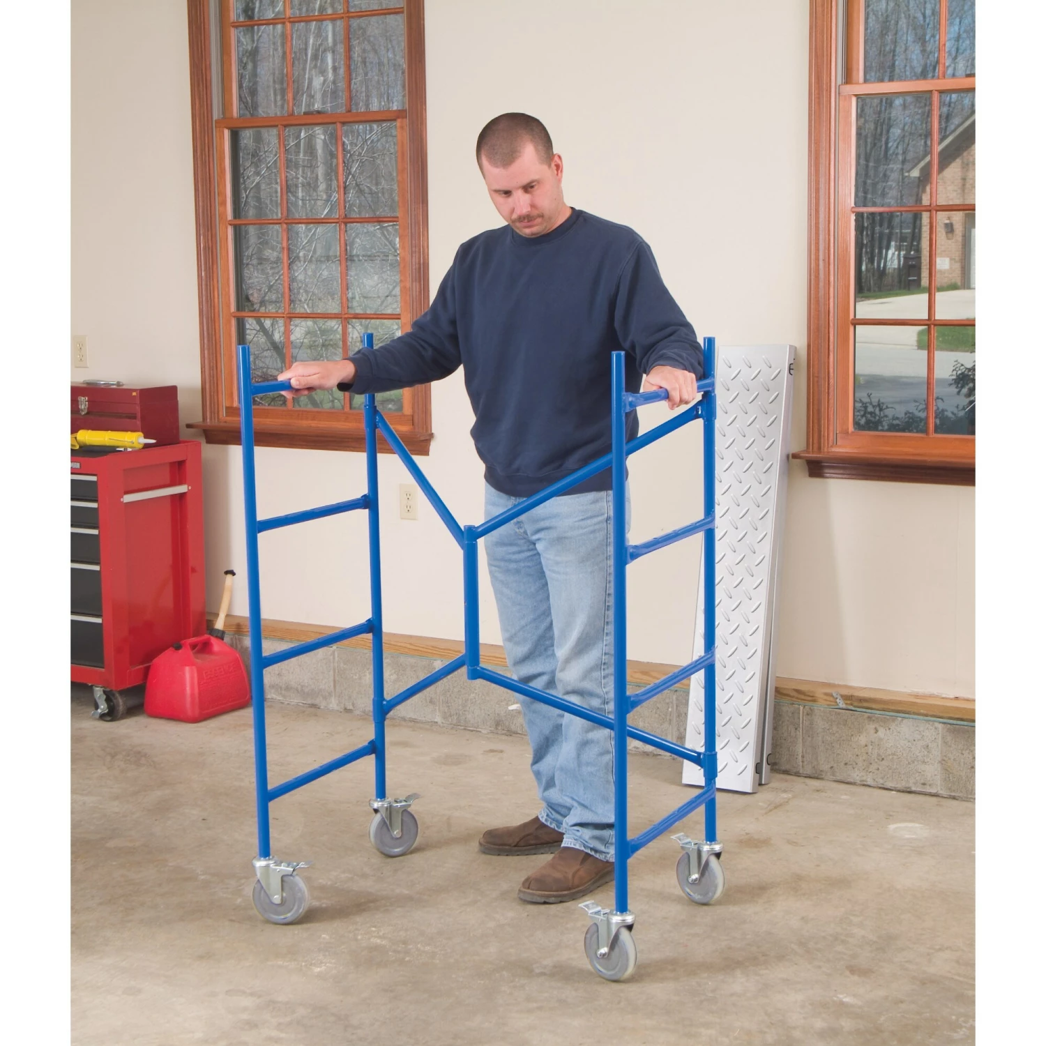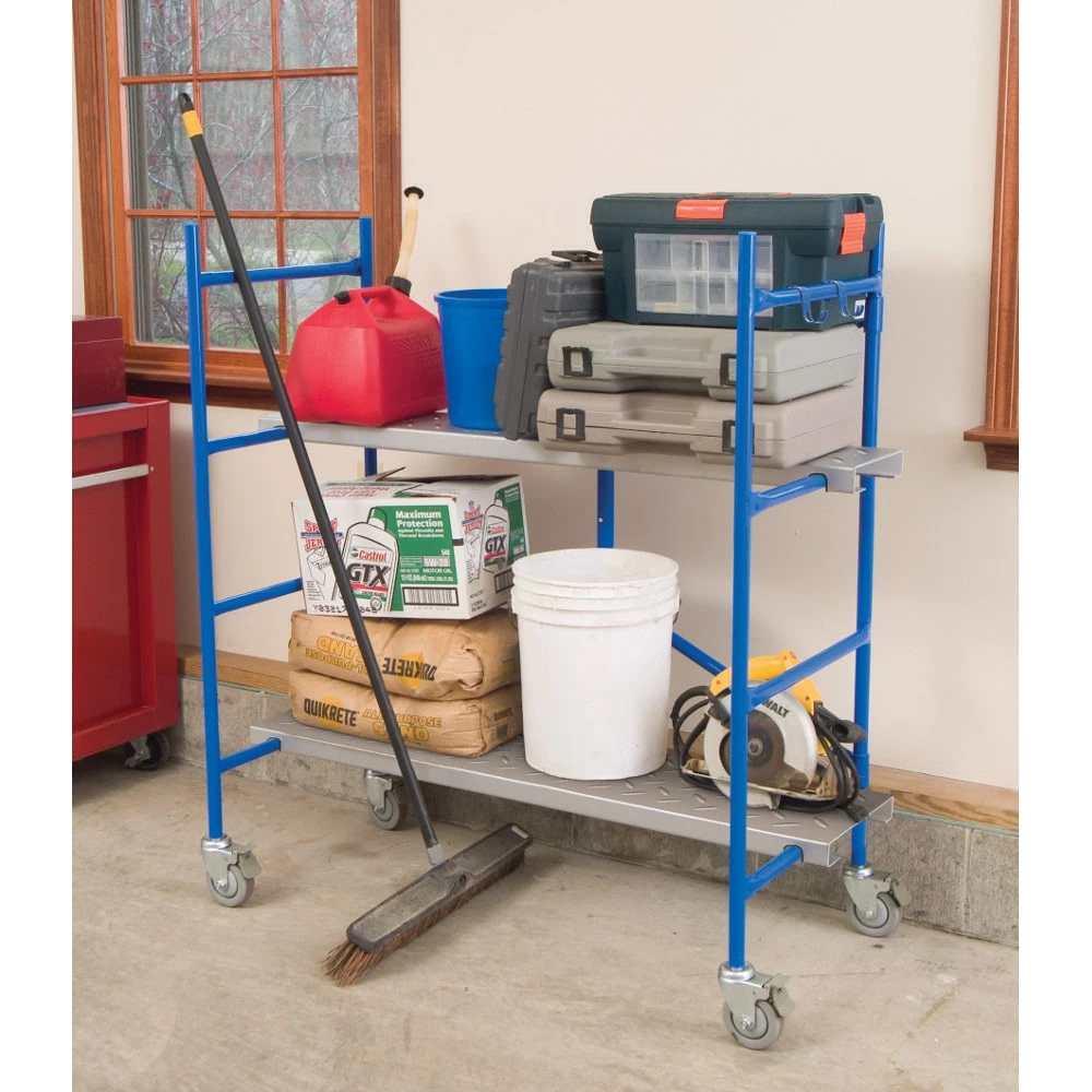 The PS-48 portable scaffold is a versatile, portable 4 Ft. scaffold that can be used as a push cart, working scaffold, storage shelf or work bench. Contains two planks (one 10 In., one 6 In. deep), with combined 500 Lbs. load capacity (250 Lbs. per plank). Planks adjust to different working heights of 12 In., 24 In. or 36 in. Non-marring wheels prevent damage to floor by securely locking into place. Multi-use S-hooks make transportation easy and are ToolLasso® ready.